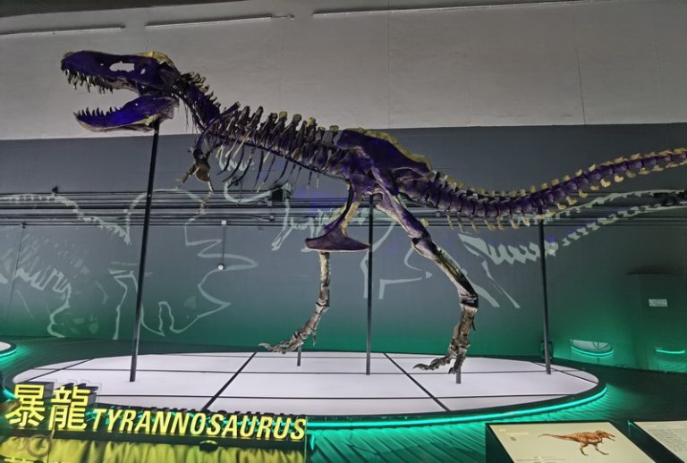 肉食性的伶盜龍利爪刺入草食性原角龍頸項,但自己的右臂則被原角龍咬斷。惟撕殺正慘烈之際卻遇上泥石流,結果留下這幅令人看得心寒,卻重現恐龍生活原貌的化石。
