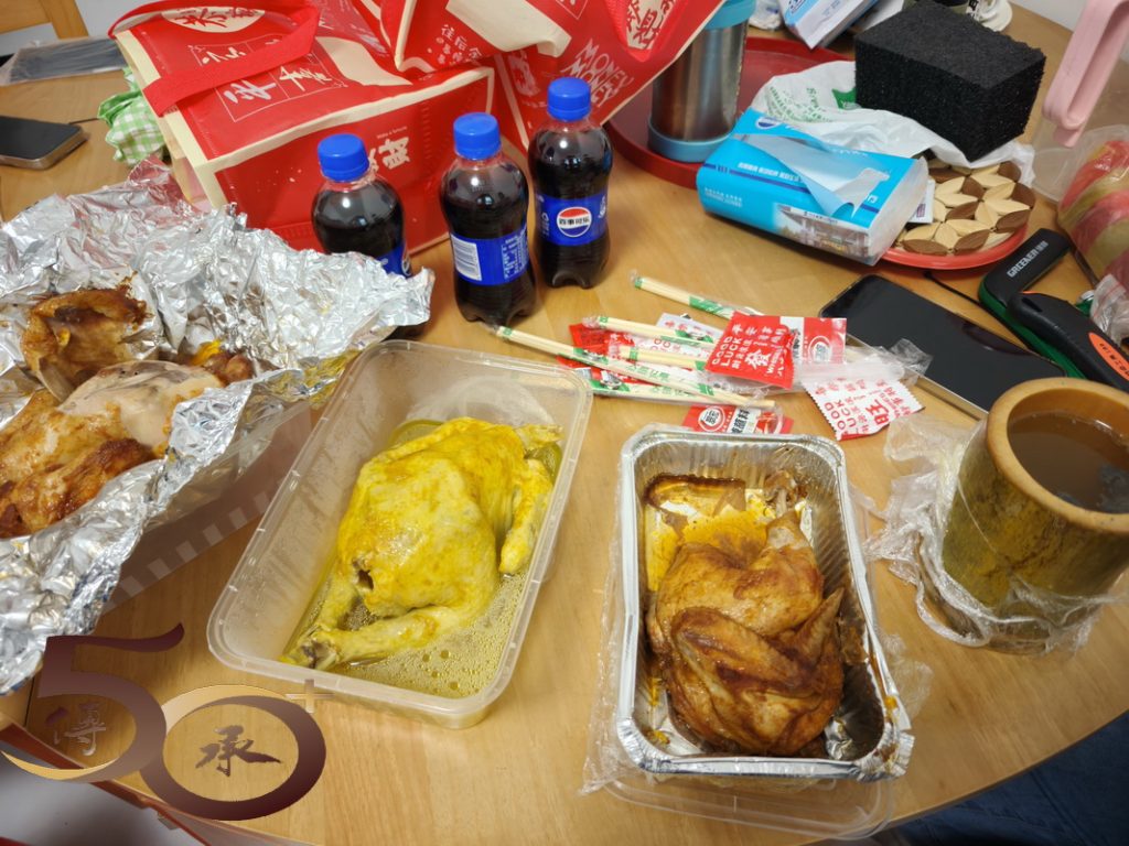 在江橋公橋巧遇肇慶的「失魂雨」,在橋頂上「笑看天下」之際突然下起大雨來,匆匆趕回橋底避雨,剛站定不久,大雨又止了。然而天色昏暗,還是先行駕車回到宿處,並透過點評在「加窰雞」點了一客包括整隻窰雞和藥膳蒸雞鴛鴦套餐,以及半個窰雞加自選炖湯,連同配送費共162元。