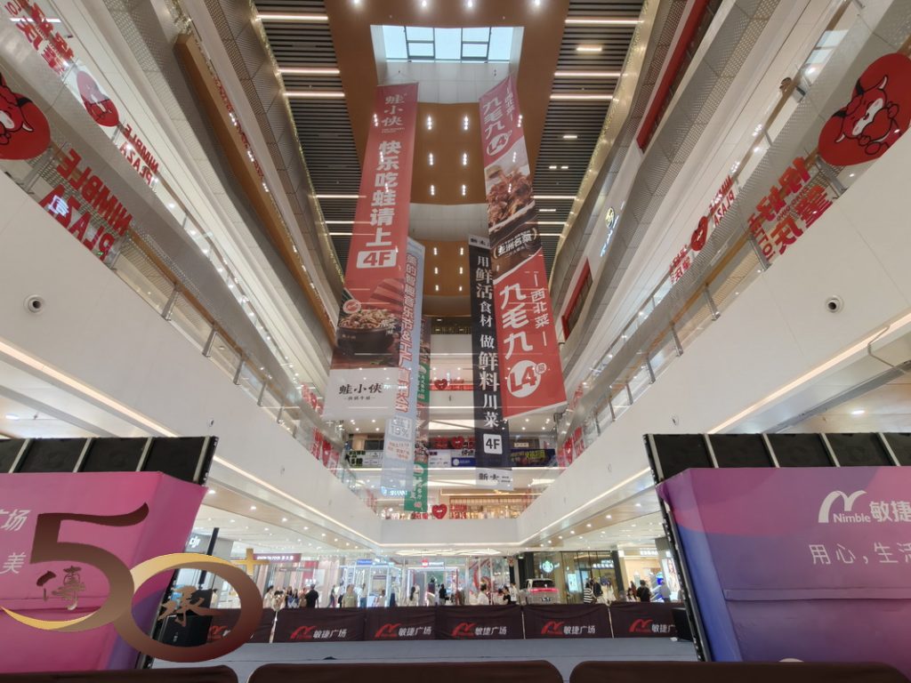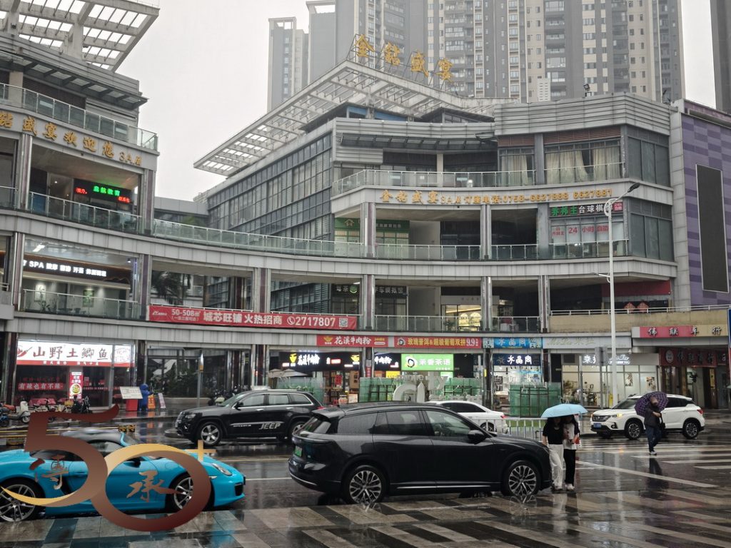 吃過窰雞午餐,待至下午約1530時,天色雖陰暗,惟已不見風雨,遂棄「小牛」而打車到昨日路經時一片繁華景象的「敏捷城」逛逛。由於時間甚早,敏捷城對面的夜市十分寧靜,只有一兩個擺攤主在準備中,而旁邊的益華國際廣場人流亦不多。