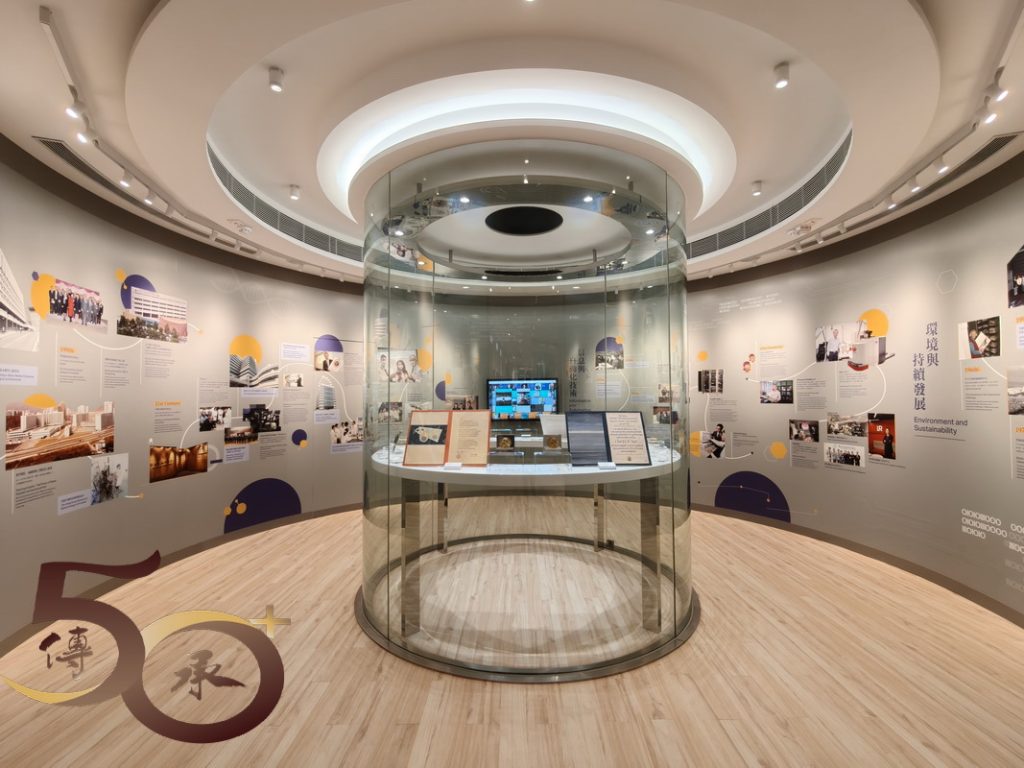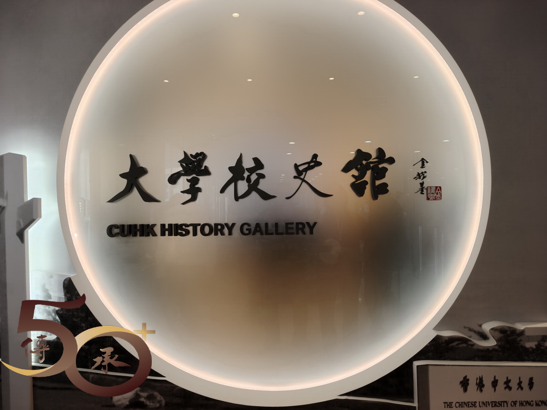前往中大校史館,須經圖書館正門進入,入口處的圓形光環上的「中大校史館」五個大字,乃第五任校長,專稱「金公」的金耀基先生的題筆。雖然校史館共兩層七大展區,但由於時間所限,只能「走馬看花」地簡單地看一遍。
