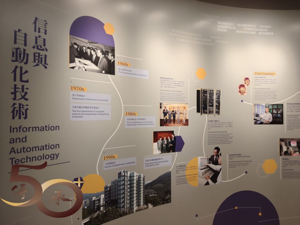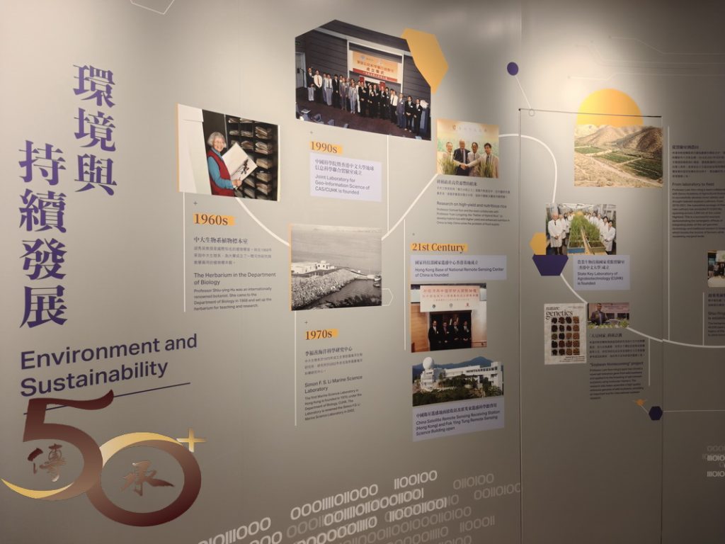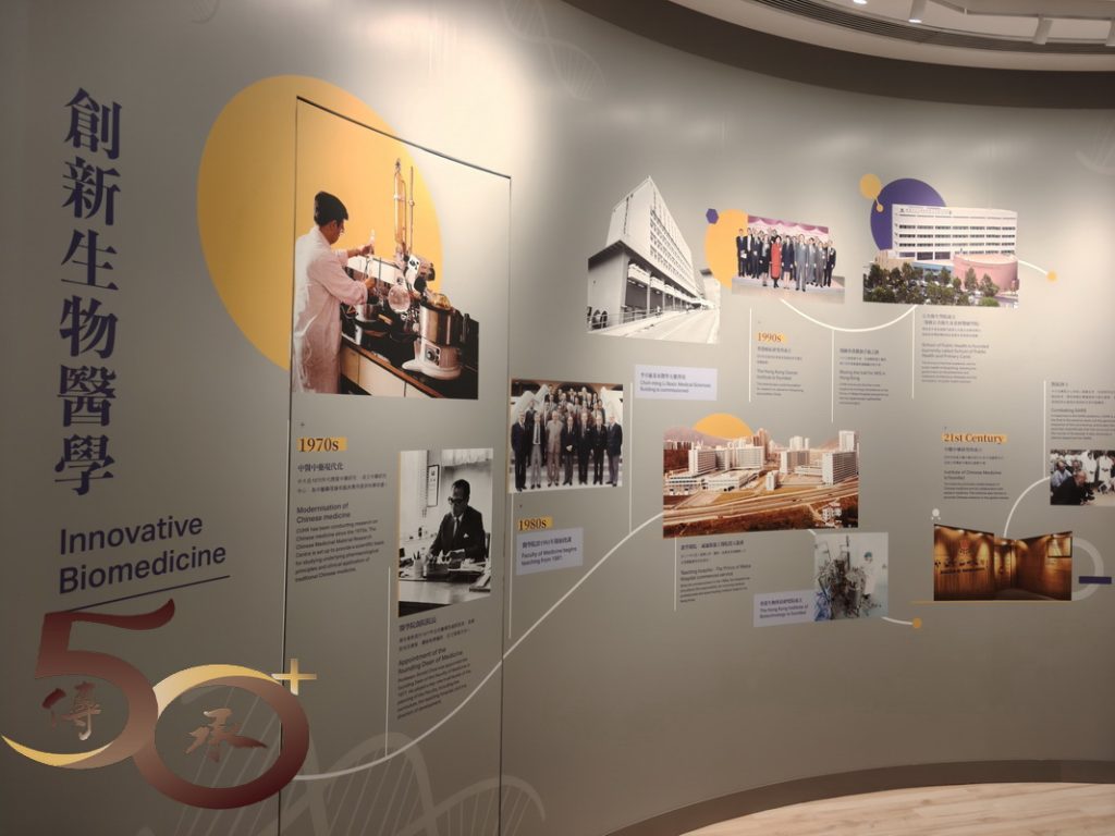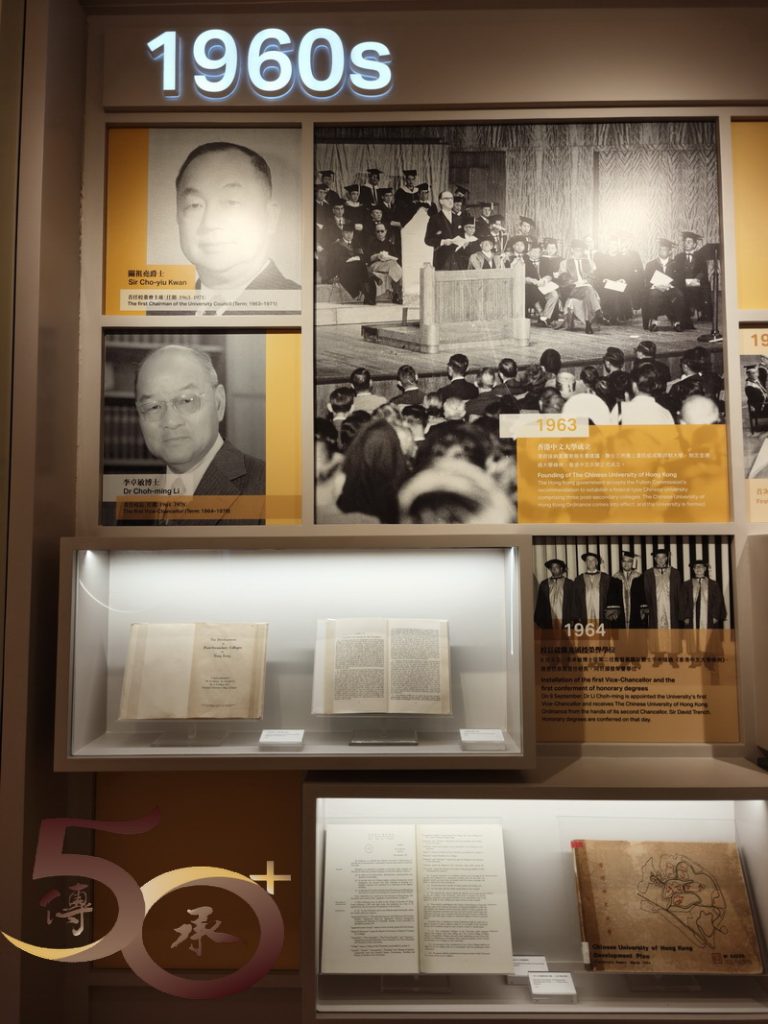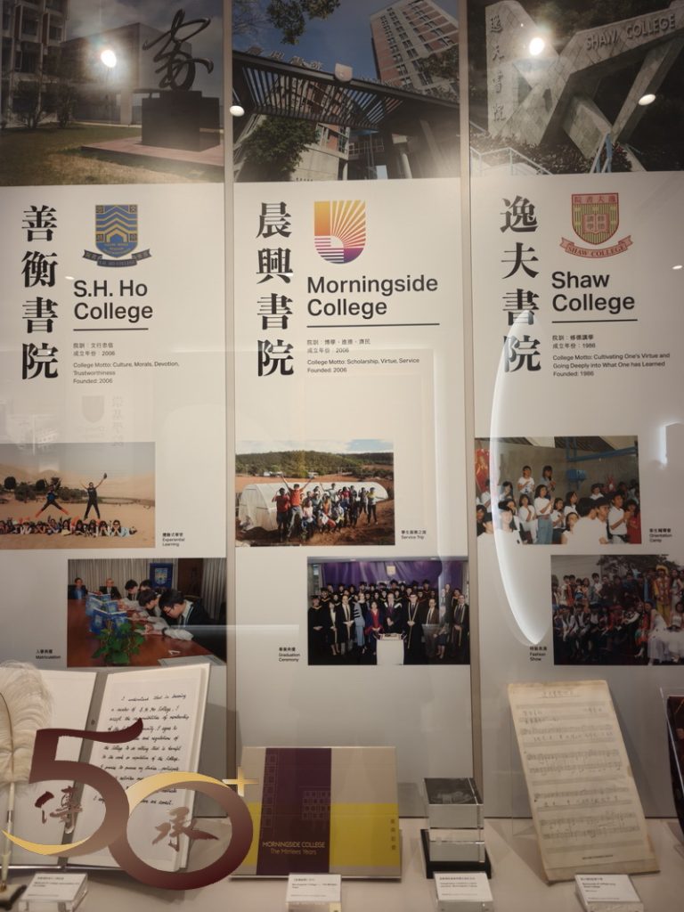 在「一甲子里程」和「從書院到大學」展區上,可以看到校徽以下,新舊院校的院徽,以及透過文字和圖片,認識院校的演變歷程;「卓越教學」的說明開首就是「博文約禮」的釋義,相信每名「中大人」都應時刻銘記。