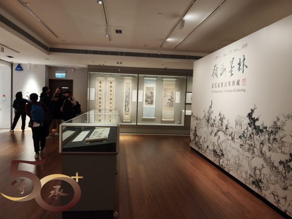 離開中大校史館,緊接而來是到訪「文物館」,一處多次踏足中大校園卻未聞未知的地方。相對校史館,文物館的「文化」氣息更濃,展出黃氏家族捐贈的畫作和書法,以「嶺海墨林」為題,廖廖數字便已道出箇中真義。