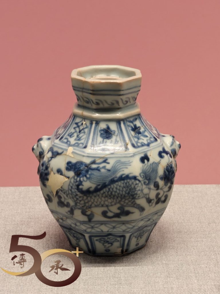 此外,展品亦包括印尼東爪哇省多烏蘭遺址出土的元代瓷器標本,足證元朝「武功」強盛之餘,亦促進了跨地域的貿易往來。其中展出以東南亞為主要銷售市場的青花麒麟風紋八棱小罐,並非如西亞地區的大盆大碗,反映元青花瓷品種的多樣性,迎合不同市場的需求。