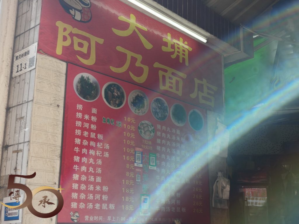 下午約2時,由黃貝嶺地鐵站出來,如常經上行馬路往沃爾瑪,兩旁食肆的食客不多。在聽到大埔阿乃麵店仍有人聲,看到數名顧客在店內進食,便進店點餐,叫了一碗豬雜河粉(18元)。