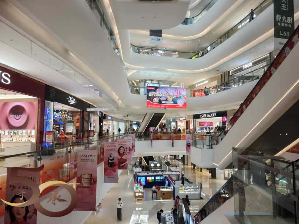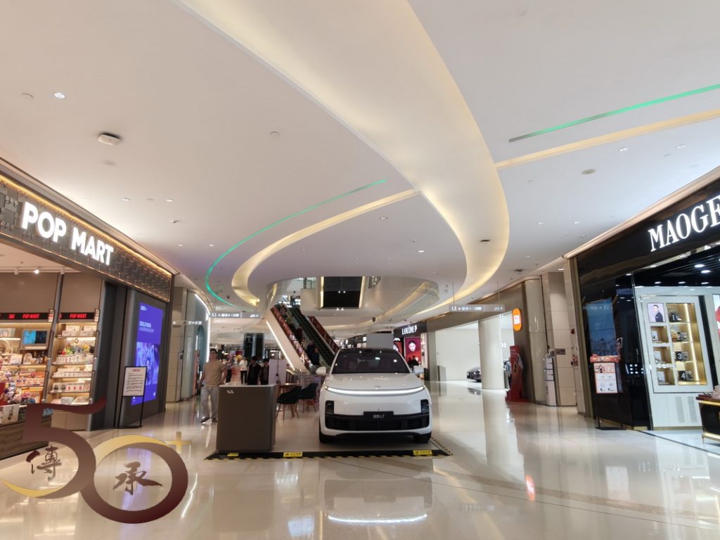 由A進出口離開,前方便是卓悅匯。一如其他大型商場,假日的早上時份人流未見,諾大的空間下,各式其式的名店,又或是引領科技潮流,不同品牌型號的電動汽車,讓「逛商場」亦變得融入「潮流」文化中。
