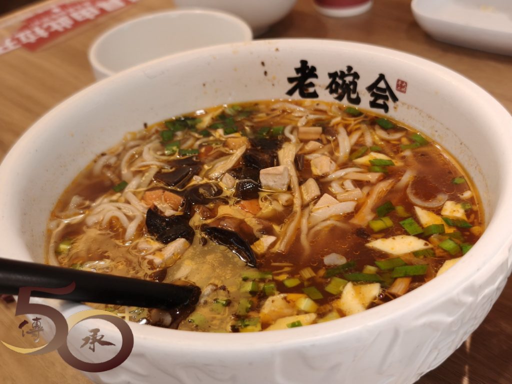 上午1100時來到商場地庫的「小梅林」美食坊,繞行一圈,左挑右選下到了老碗會用餐,與老伴分別點了爽口飽腹單人餐(37元)和三秦套餐(45.9元),兩者包括的肉夾饃是每次在老碗會用餐必吃之食,卓悅匯點亦維持一貫水準,好吃。至於酸中帶點辣酸湯臊子麵則是「開胃」麵食,而招牌Biang Biang麵則勾起了2018年西安旅遊的回憶。
