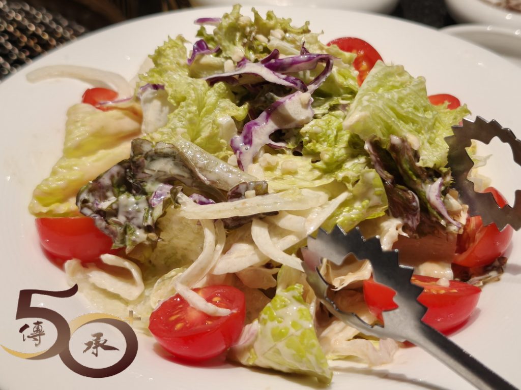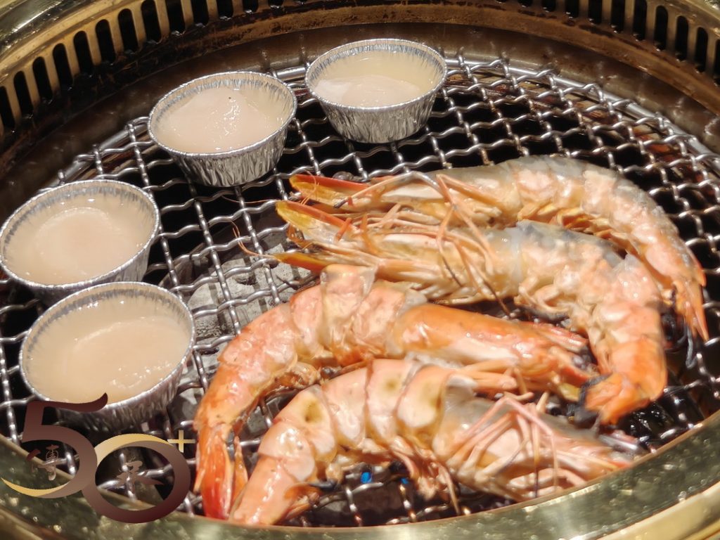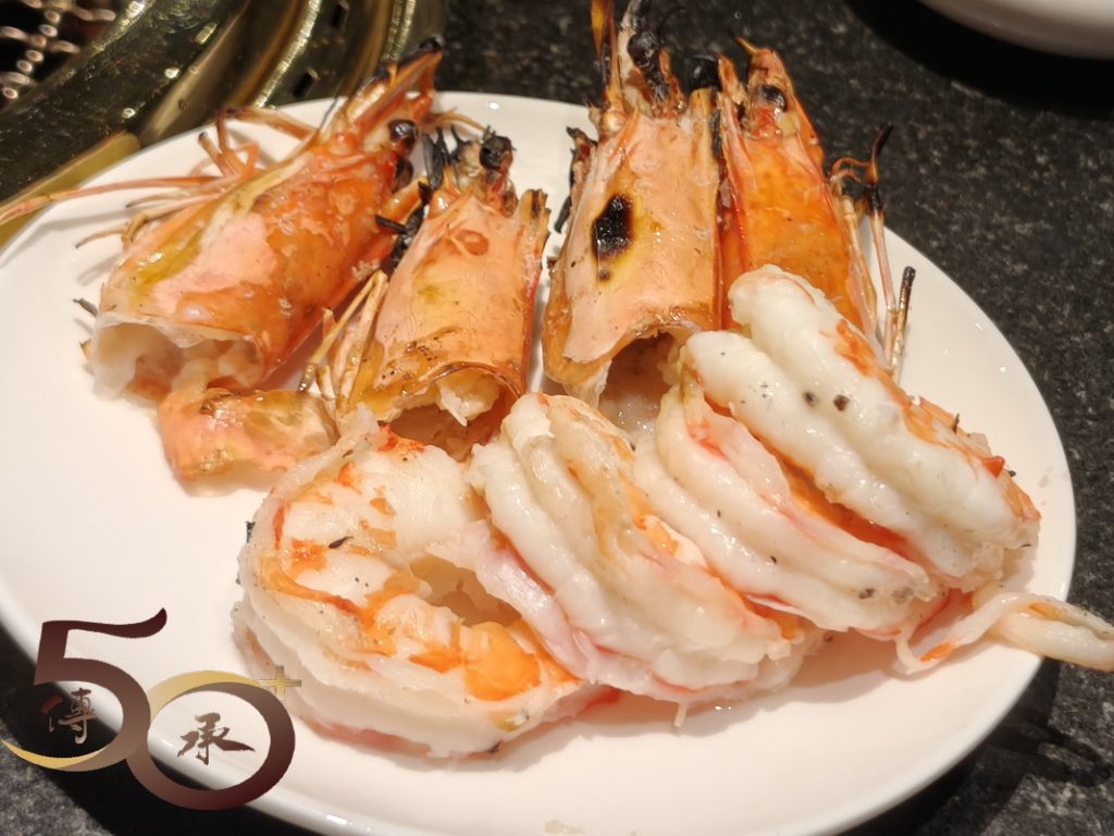 除烤肉外,總是讓人忽略的前菜是蕃薯蓉,上面加了數粒紅豆,清淡略帶薯甜的口感本是不錯,但相對肉香的誘惑,注意力難免不大。惟兩盆材料不同的沙律,夾雜在滿口大肉中,一直發揮「協調」的作用,彼此十分相配。至於侍應協助,由拆蝦殼至蝦身由白變紅的「烤蝦」,仿如看着一場藝術的表演。