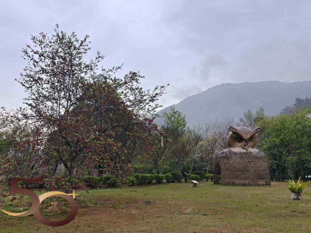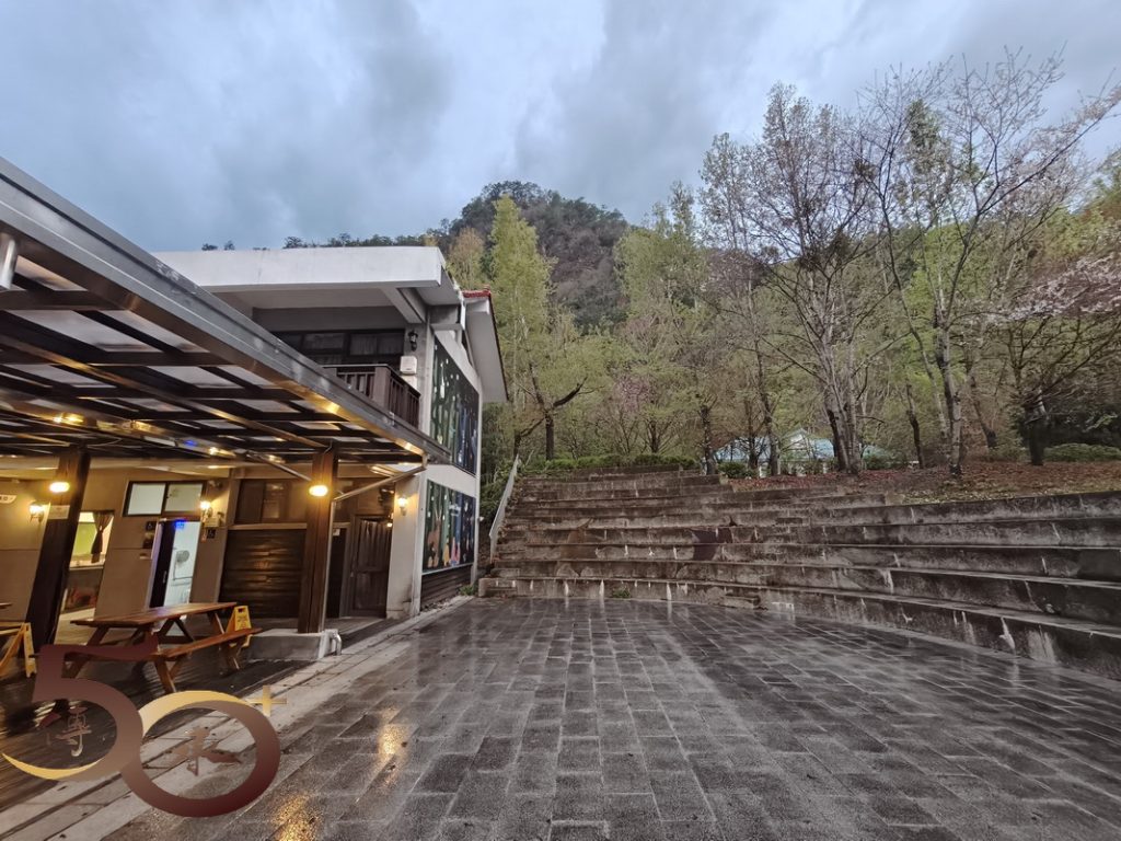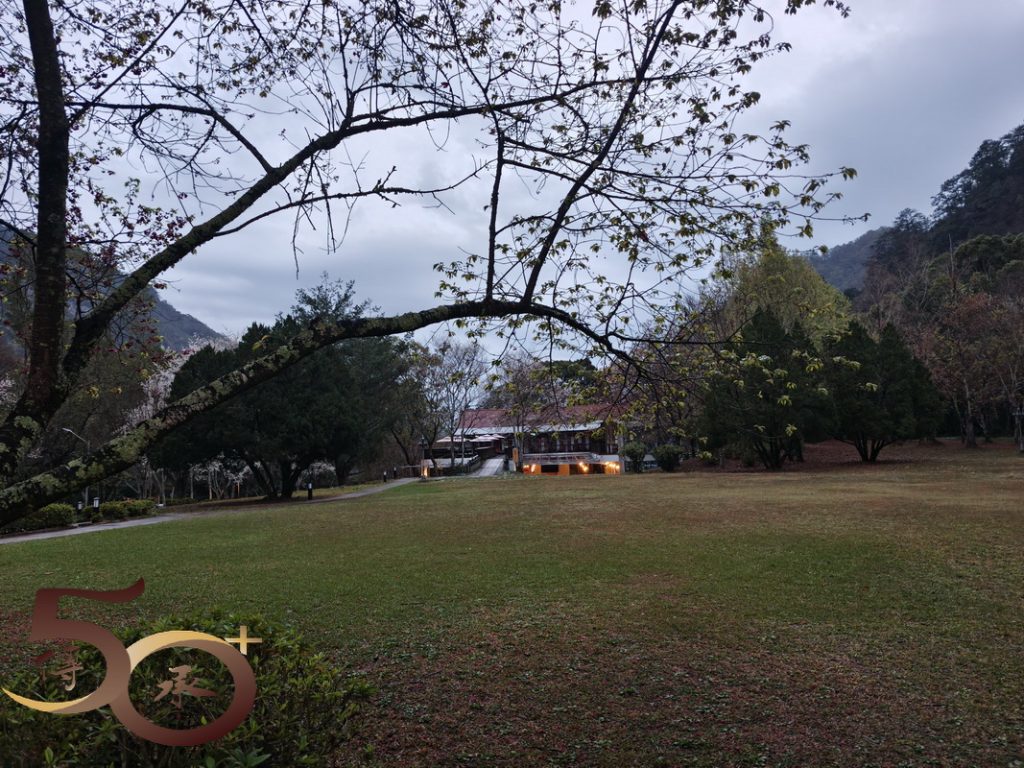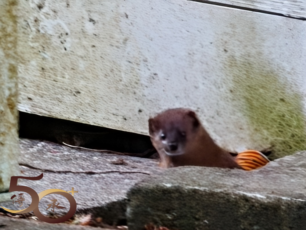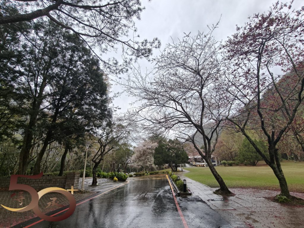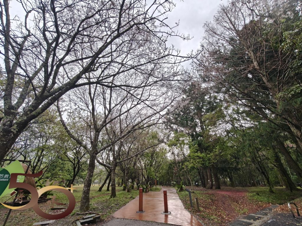 繞到櫻花園步道,沒有藍天陽光的照耀,櫻花也看不到「笑容」,顯得有點黯然。然而在楓紅山莊餐廳的「小洞穴」內,一頭竄進竄出的黃鼠狼,早已為新一天的開始忙得不可開交。