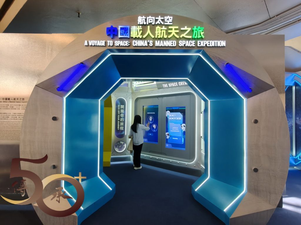 離開「太空探索展覽廳」,隨即到地下展區參觀「免費」開放的「航向太空 — 中國載人航天之旅」,有助深入認識1992年啟動的中國載人航天工程,尤其是2002年天宮空間站的工作與成果,以及香港在空間站扮演的角色。