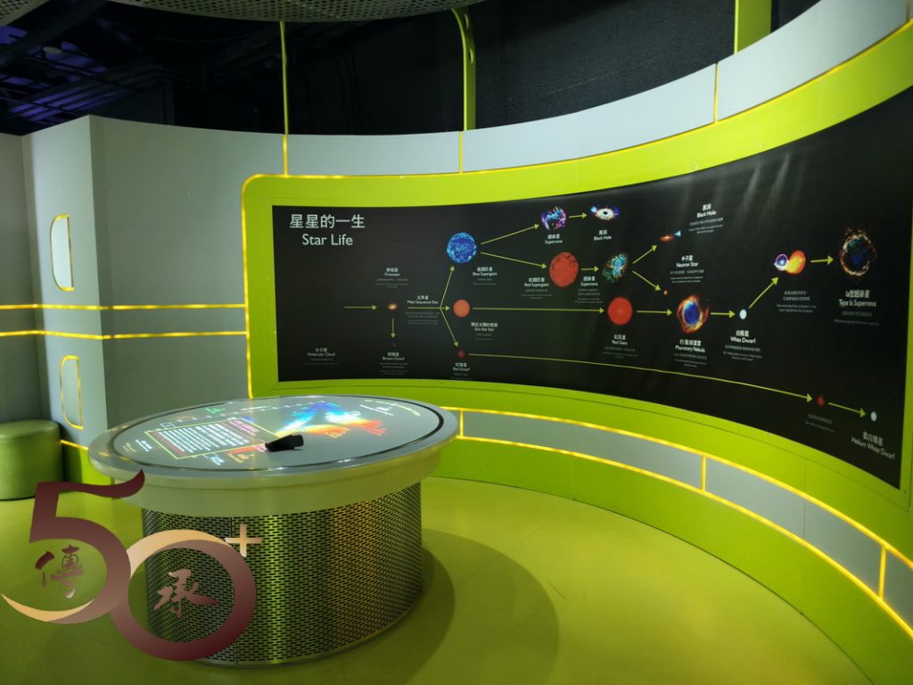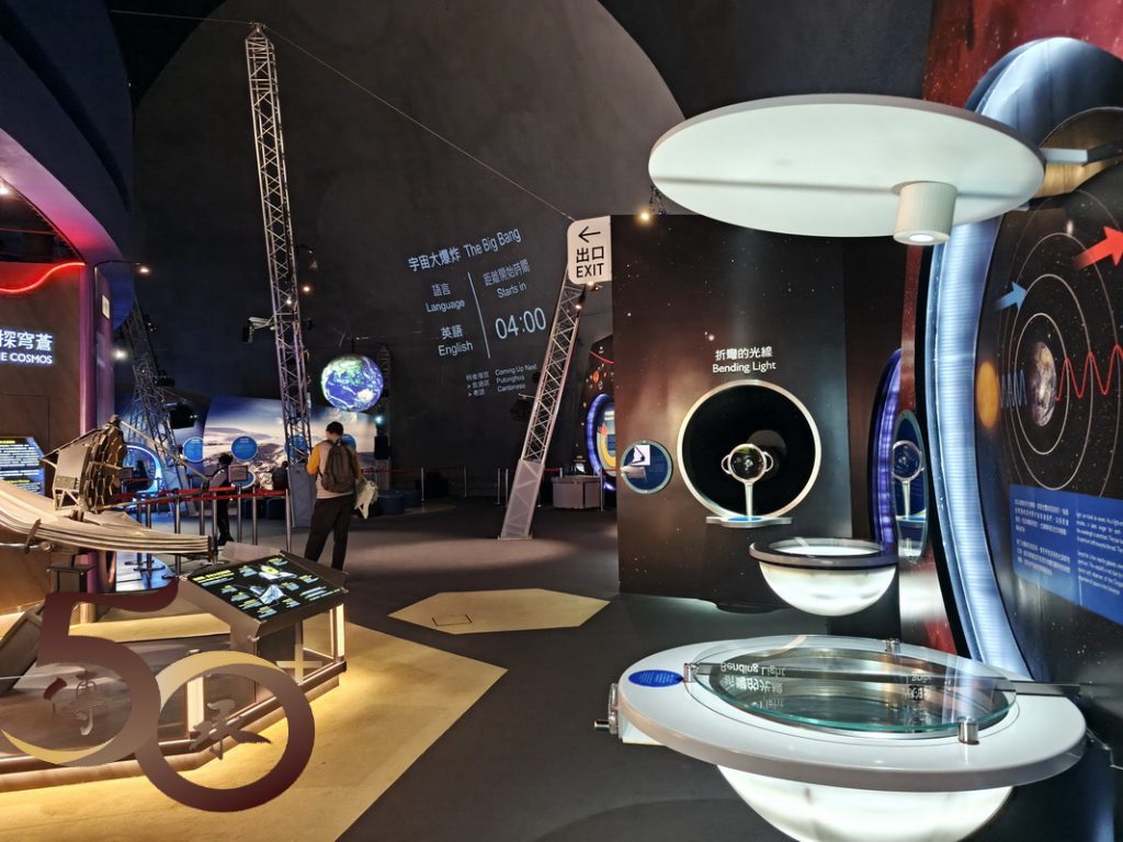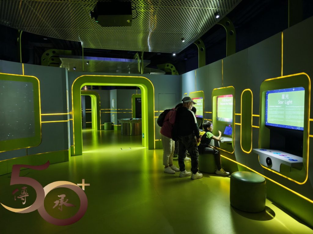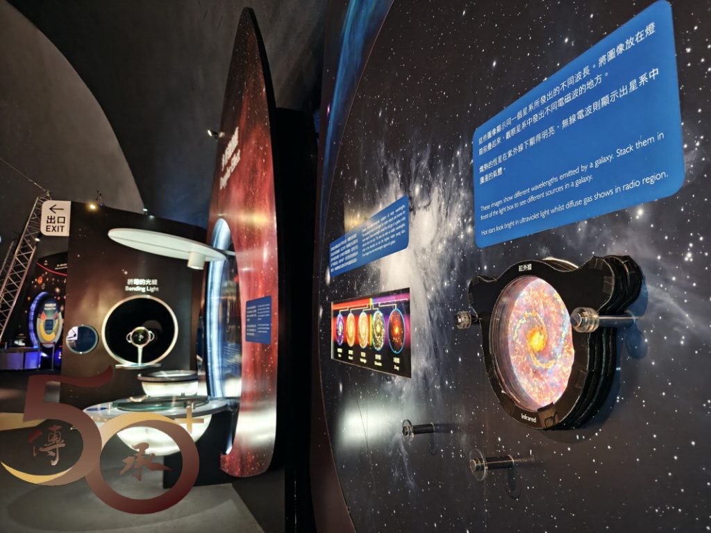 接着來到「宇宙展覽廳」,展區的燈光和布置,較10多年前記憶留存的「黑白」和「平鋪直敍」,毋疑是「有趣」和「進步」的改變,讓參加者仿如穿越時空,親身走進天文和太空科技新知的領域。