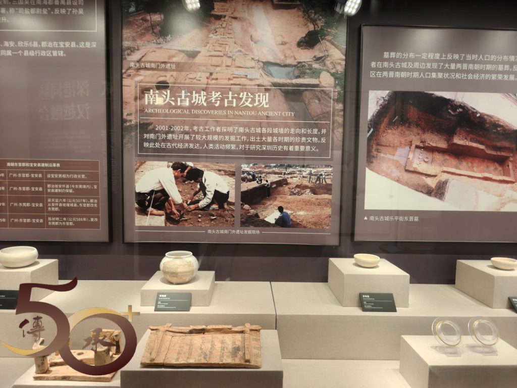 接着是「朝花夕拾」南頭古城出土文物展,簡述了「深圳六朝的墓葬形制,並將墓葬出土文物「重光」,以及其他遠至春秋,近至民國初年等其他文物。