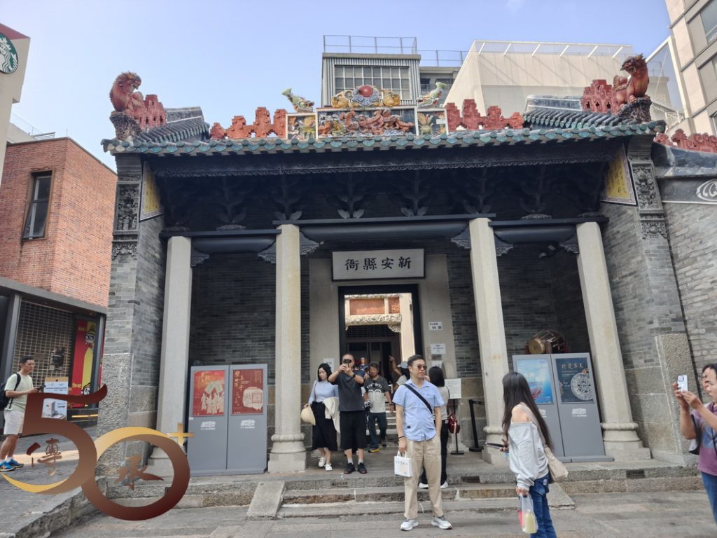 東莞會館因進行修繕工程而閉館,遂直接前往「新安縣衙」。「新安」具有「革故鼎新,去危為安」之意,源自明隆慶六年(1573年),巡道劉穩呈請朝廷將深港地區從東莞縣劃分為「新安縣」。內堂佔地不大,縣吏居中,左無衙役,右無書記,下無犯人,四周牆壁附加展櫃,展出收錄的縣衙資訊和文物,最後在信國公文氏祠逛一圈,作為古城「舊物」的段落終結。