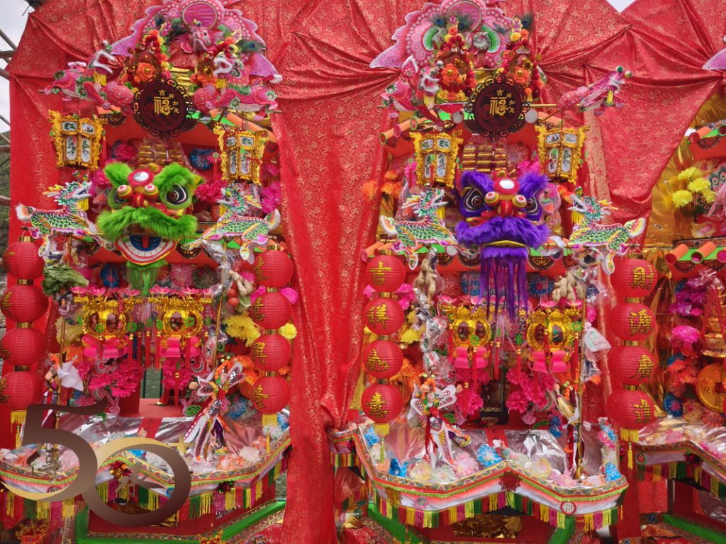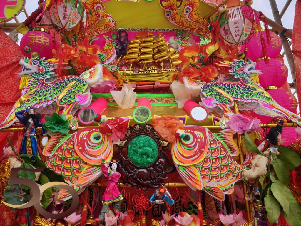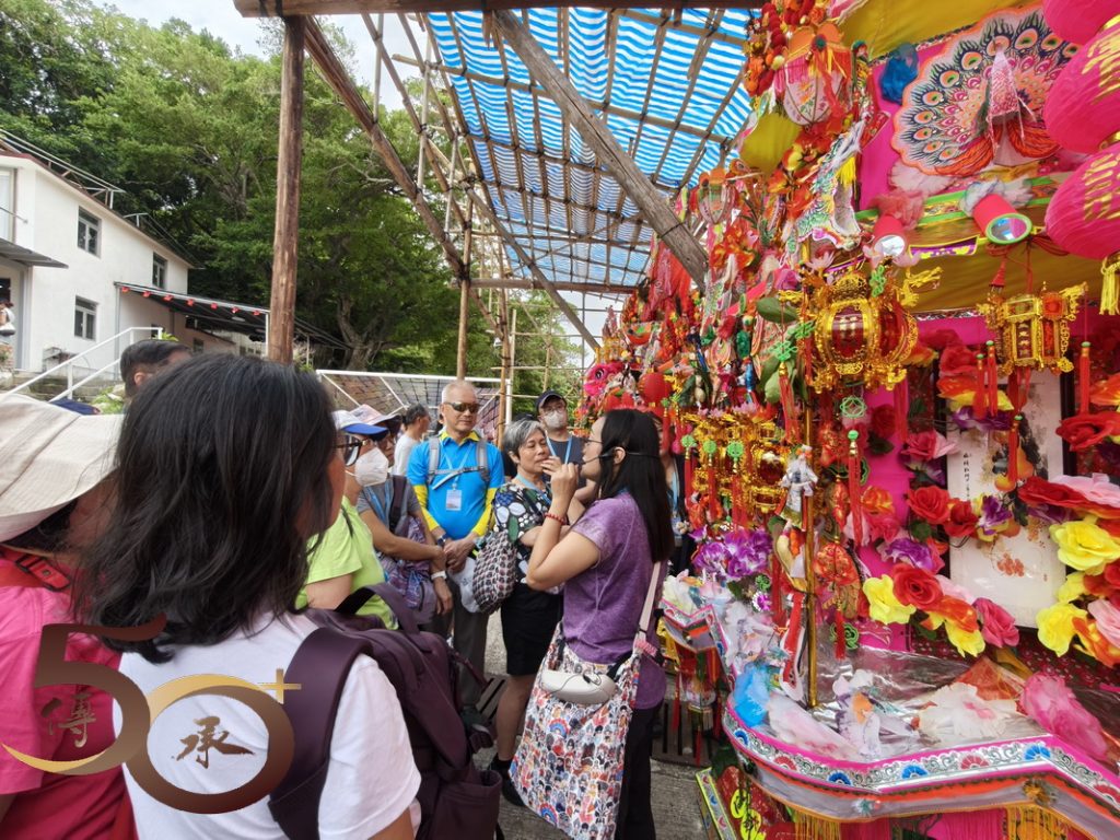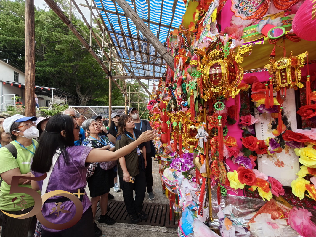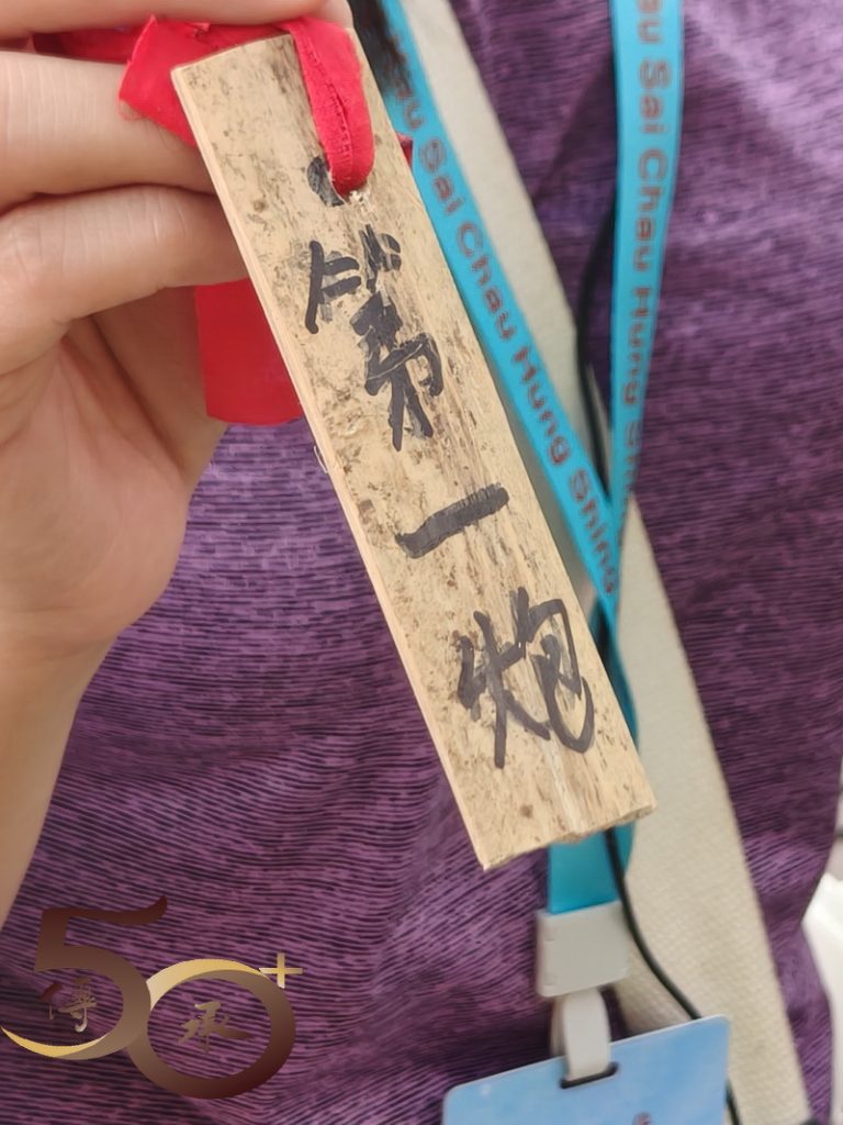 最後值得一提,就是過去由爆竹製成的傳統花炮,基於安全考慮已改為「抽花炮」,將「搶」花炮或「燒」炮變成「抽籤」,抽得炮芯的會堂便可按編號換取「炮山」。期間,Bonnie展示了「炮芯」複製品,繪聲繪影地形容昔日「燃點」爆竹,將花炮射上天再掉下時,一眾男兒漢怎樣「搶花炮」的盛況。