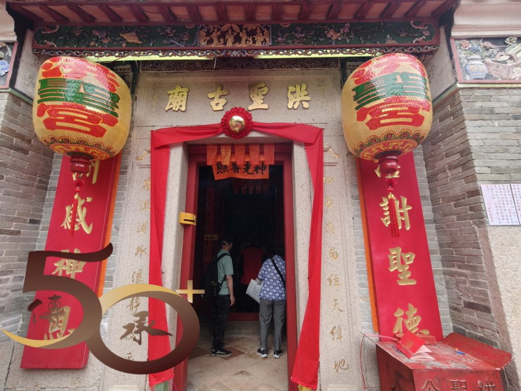 不知不覺,兩小時的滘西洲洪聖誕非遺導賞圓滿結束,多謝吳師傅和Bonnie就非遺項目的戲棚和花炮技藝的分享,獲益良多。下午1215時,告別他們兩人後開始「自由活動」時間,首先往不遠處,獲評為法定古蹟的「洪聖古廟」。