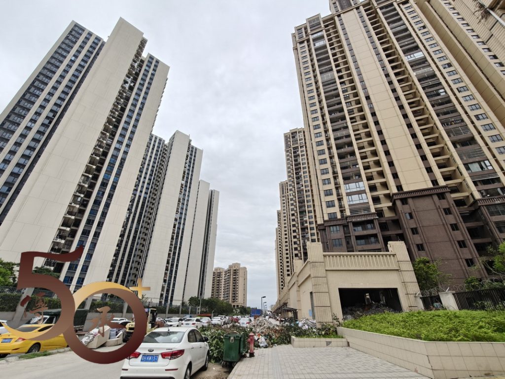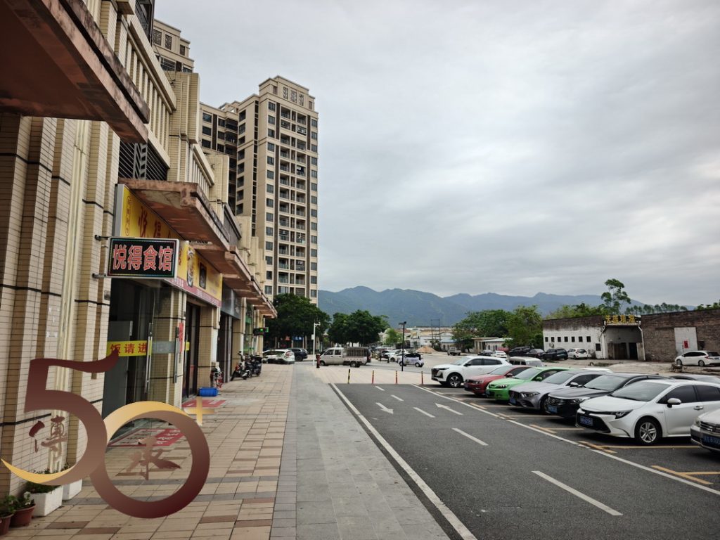 離開宿處,沿池塘北行,過農田,繞經「工廠」圍牆後側,沿臭渠般的小溪而行,約半小時後來到最近的「社區」,分屬西江悅和碧桂園四季陽光的多座高樓拔地而起,份外矚目。然而恒泰混凝土預拌砂漿廠房近在咫尺,難免大煞風景。