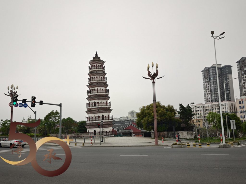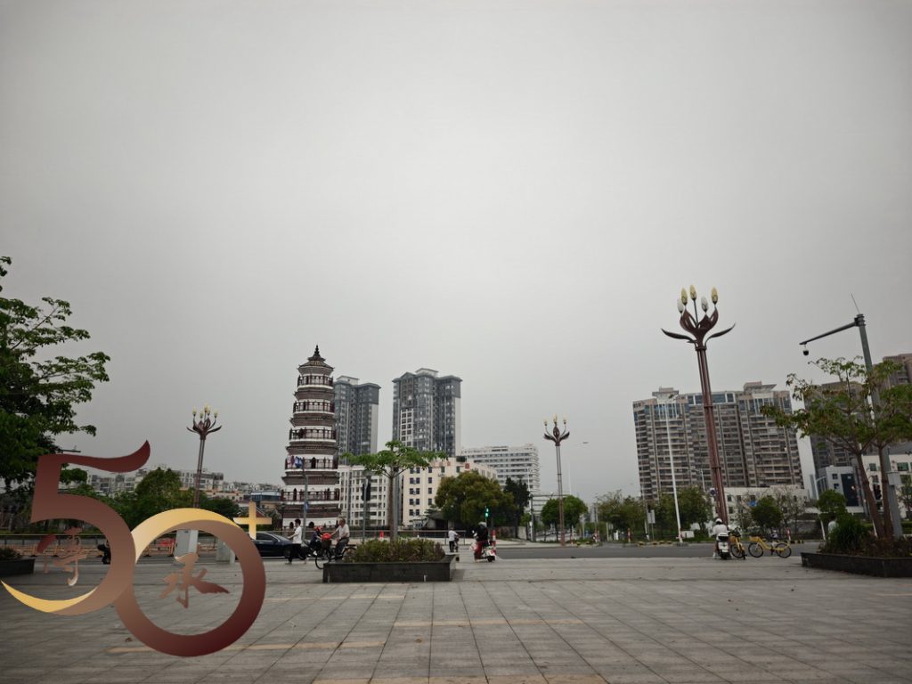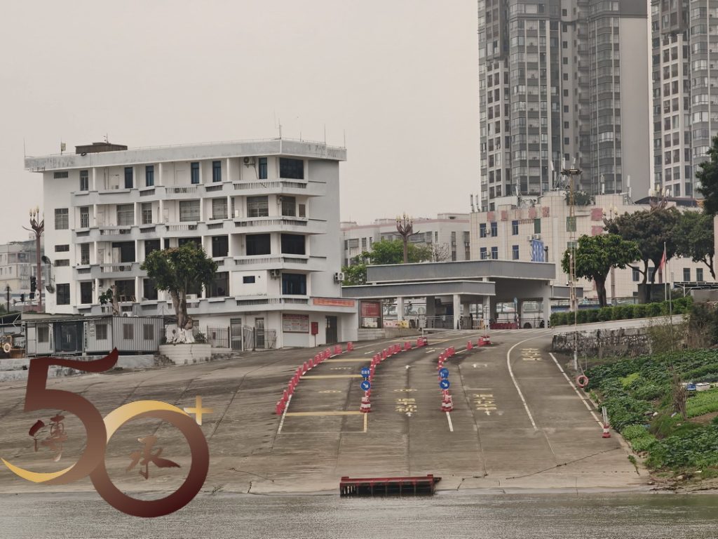 雖然二塔渡口以碼頭為「本」,惟旁邊亦設有臨江公園和步道,以及一座小型「白塔」。但由於時間不足,未有細看,只在公園門前稍站片刻,然後到渡口旁的公眾厠所「辦辦小事」,隨即駕着「小牛」回程,返回金渡。
