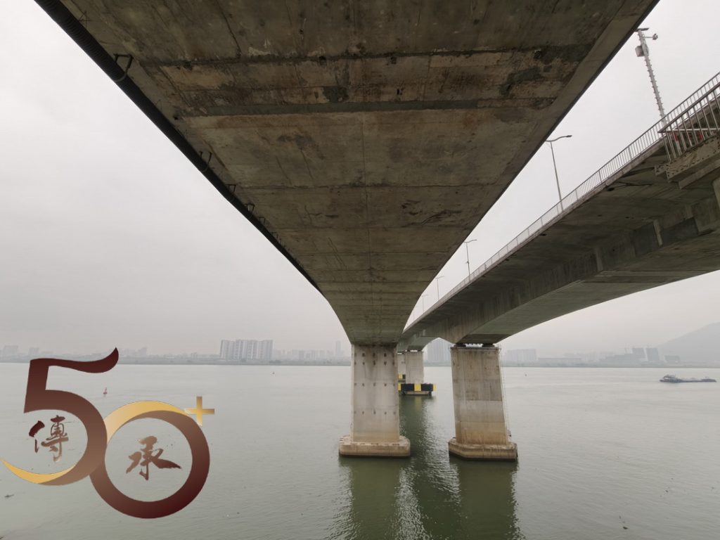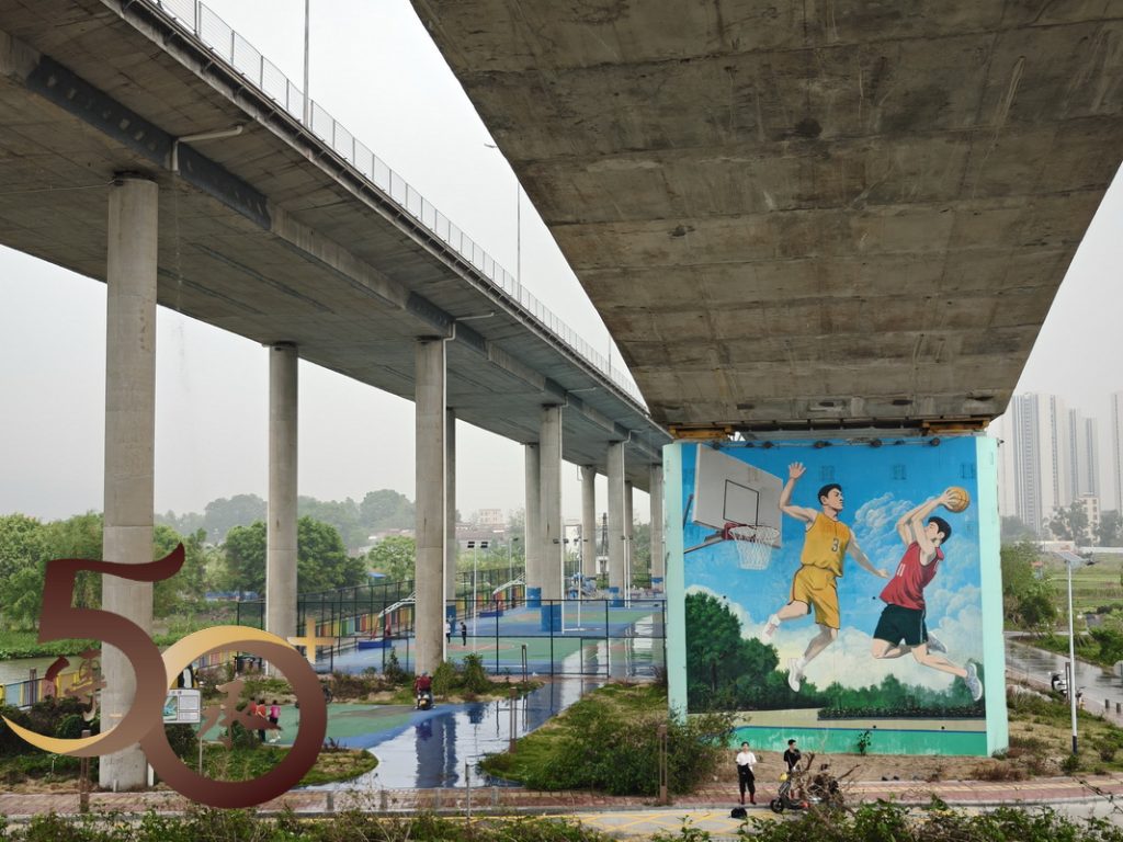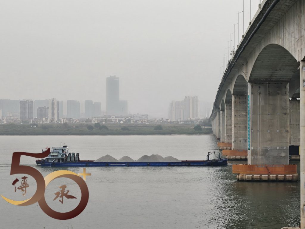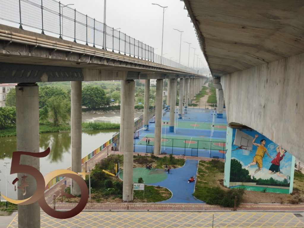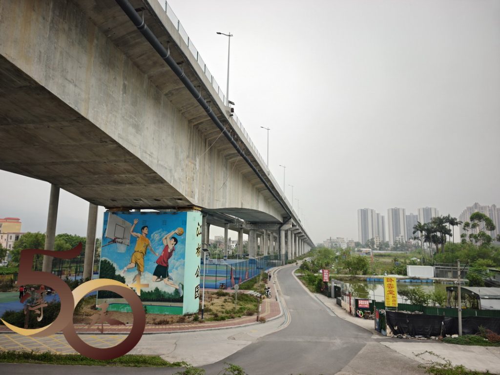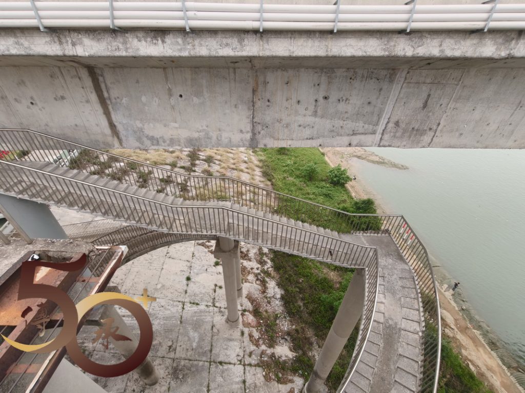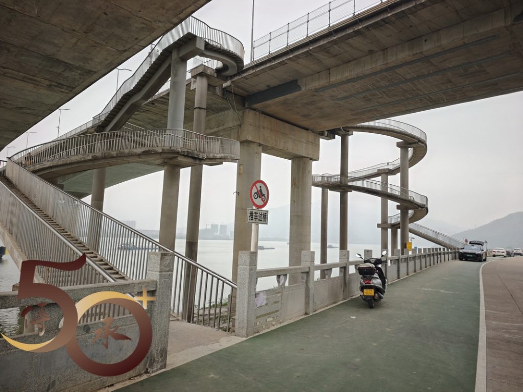 回到金渡碼頭,時間尚早,繼續沿河畔車道朝西行來到昨日「打車」不果「西江悅」社區附近的江橋公園。雖然公園設施不多,惟高達數十米,連接肇慶行車大橋的迴旋型「樓梯」卻有一種「登山」的感覺,而「頂」上臨江景色亦有「俯視」大地之勢。