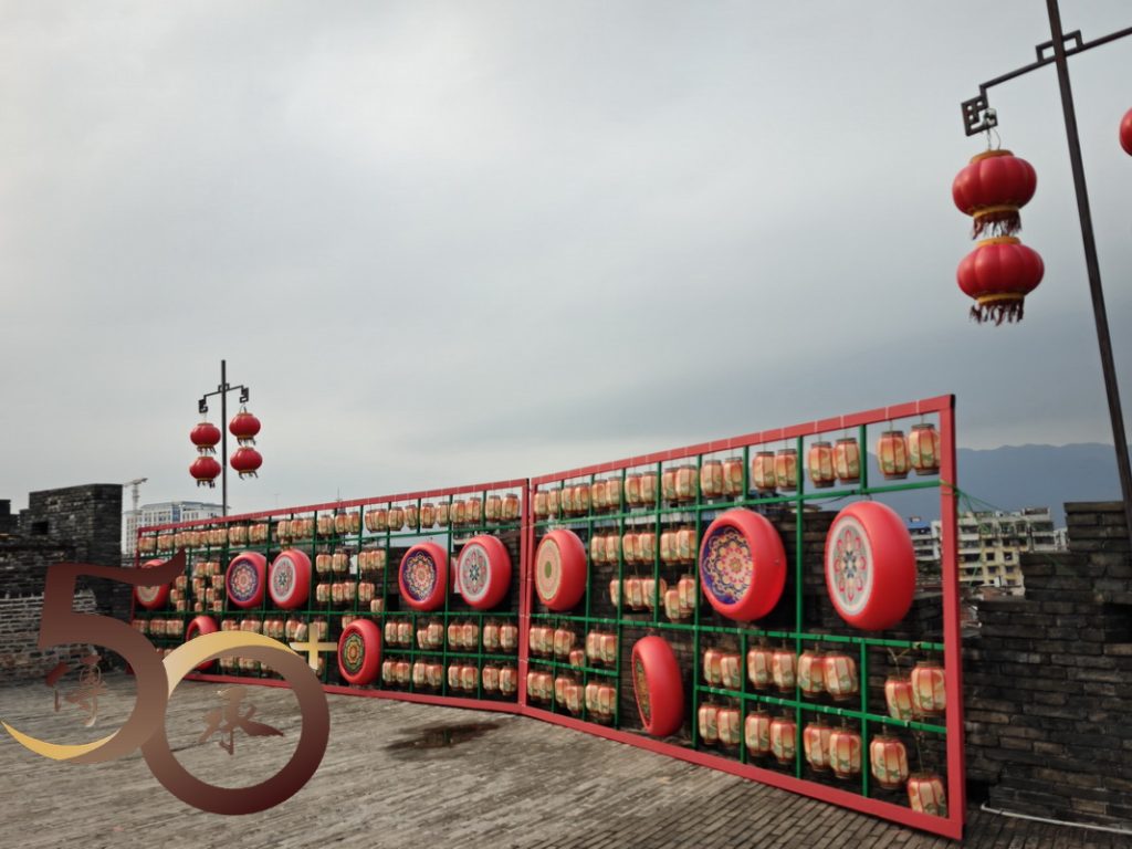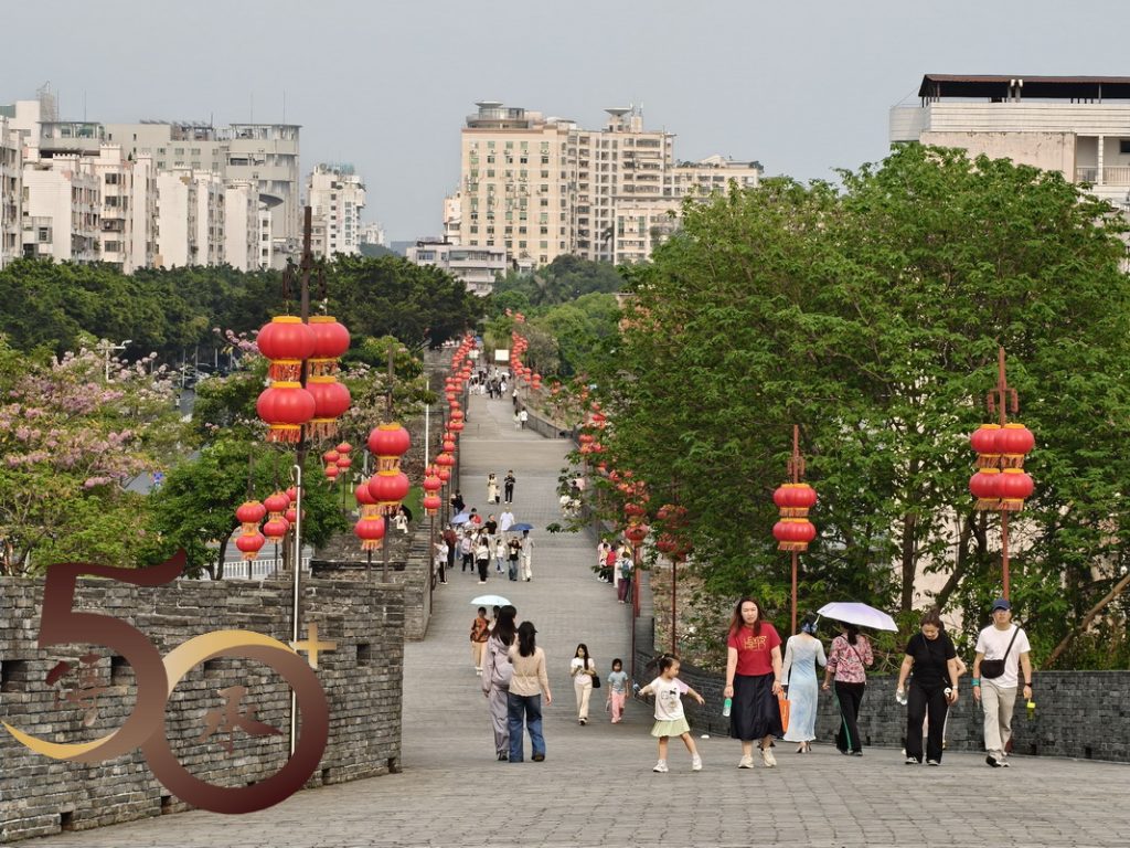 雖然經過多年,又稱宋城牆的古城牆未有多大改變,西北城牆上的披雲樓仍是地標式建築,踏上城牆一刻已遙遙看見,由長白瑞麟書的「披雲樓」三字,在夕陽下散發着昔日的莊嚴。