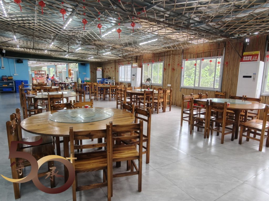 早上1134時懷集高鐵站下車後,接待旅行社導遊「花花」已在閘口前守候,轉乘25座旅遊車,前往不遠處,在農村地方常見,有點像大型倉庫的小桃農莊就餐。