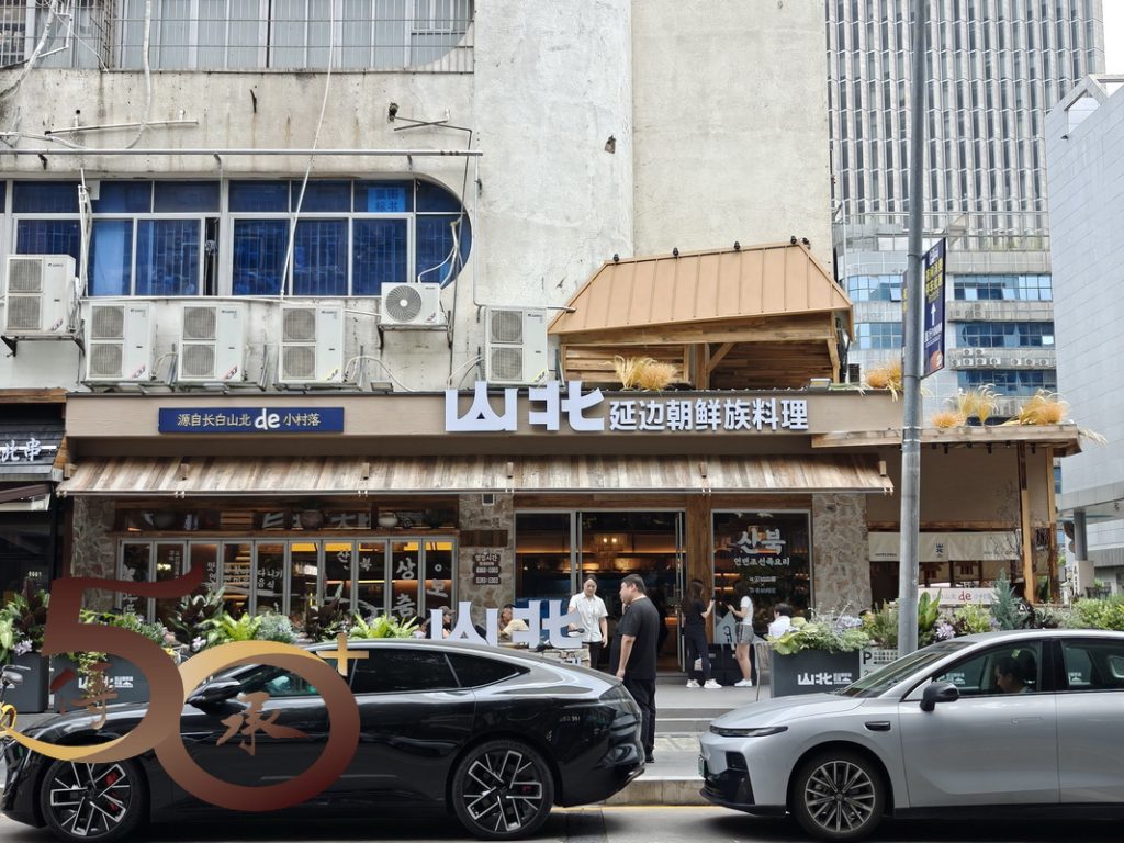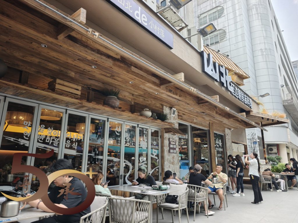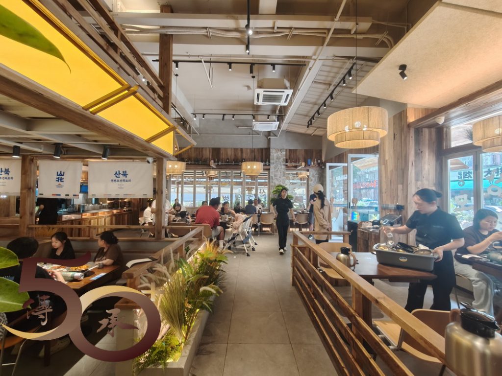 正午1215時離開東門老街,乘地鐵1號線到車公廟站,經D2進出口離開,經過毗鄰而建,銷售來自各地的五花八門食店,約10分鐘步程後抵達山北延邊朝鮮族料理。