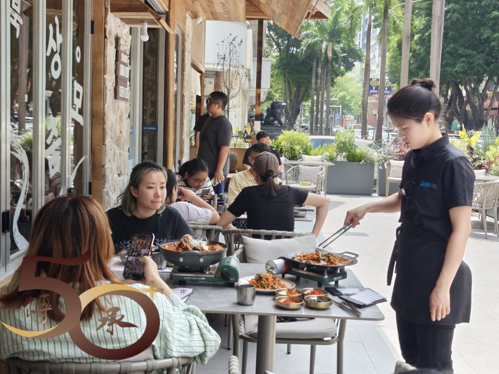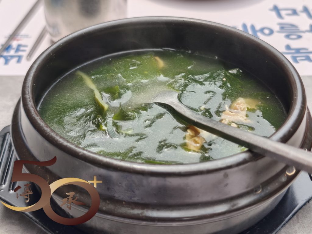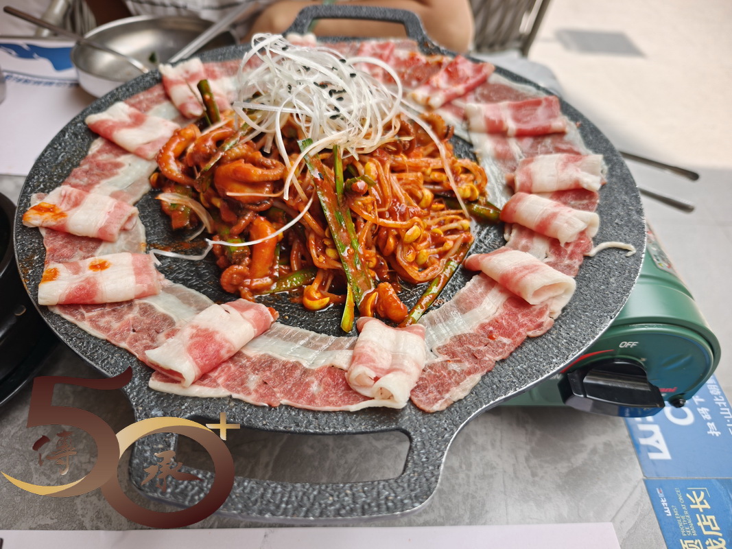 此刻在門外等候約有10多人,服務員在取得我們同意後,安排在室外就座。豈料午間陽光充沛,在近30度的氣溫下用餐,實在有點難受。味道方面,「山北」的出品水平甚高,免費試的「雙人套餐」,其中用火烤灼的鐵板肥牛八爪魚「創意十足」;石鍋雞蛋較延邊當地的做法更適合南方人口味,以及首嚐的冷吃年糕,既精緻又富口感,三者同有驚喜,值得推介。