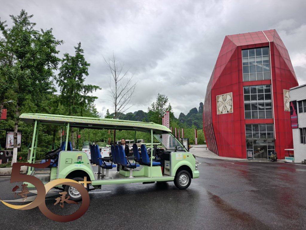 參觀安排由觀光車開始,花約30分鐘時間,沿公園「車道」繞行一圈,初步了解石漠化形成的主因和危害、公園岩溶土地現狀,改善「石漠」的綠化過程,以及對「生態」環境,包括「界碑」的設立,種植杉樹或槡林、植樹取油和牛隻「蓄牧」等帶來的經濟效益。