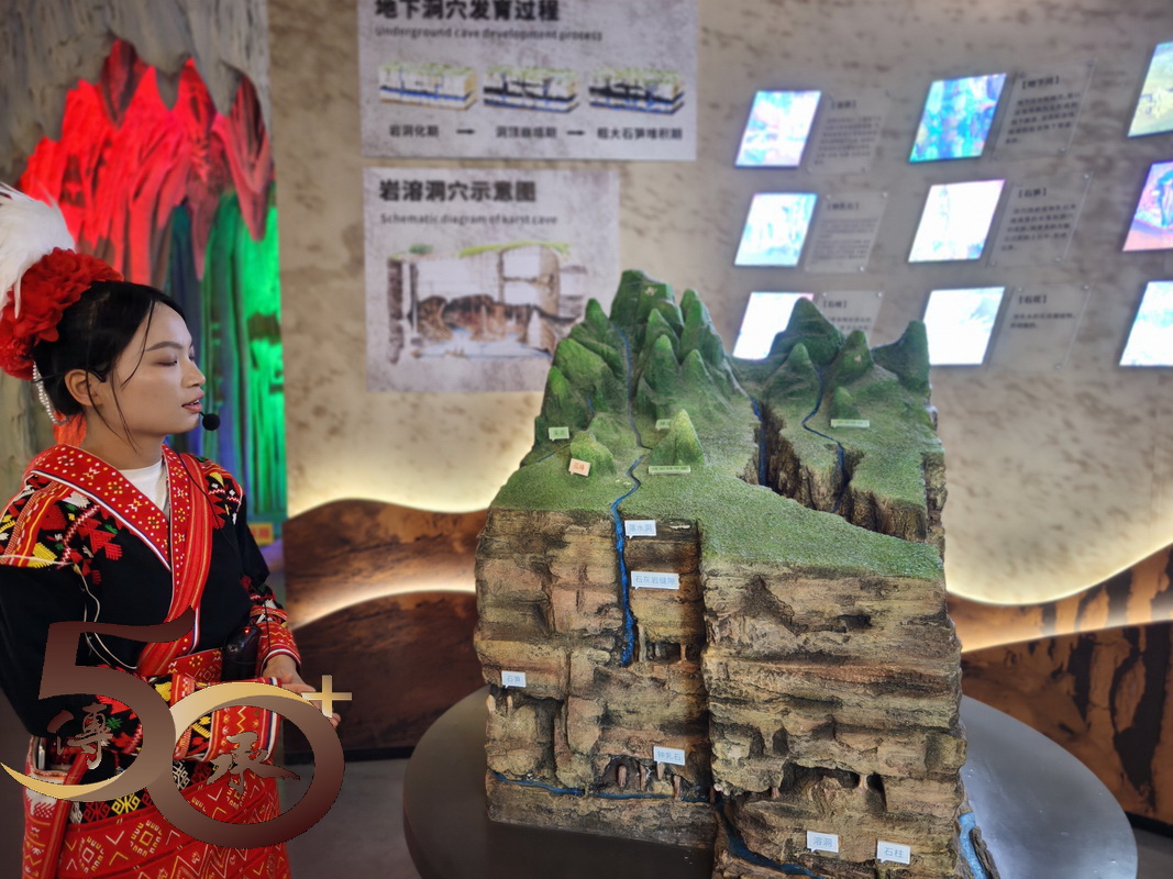 接下來到連南石漠自然中心,由穿起瑤服的講解員,解說中心內不同展品代表的意義。石漠化雖是穹蒼宇宙中的世界性難題,但溯本求源,認識岩溶奧秘,例如喀斯特生態系統中的岩性、土壤、植披和氣候的關係,再透過治理,將可在岩溶生態中,營造萬山朝王一樣的生態萬象,繼而在動植物相互協作下奏出美妙樂章。