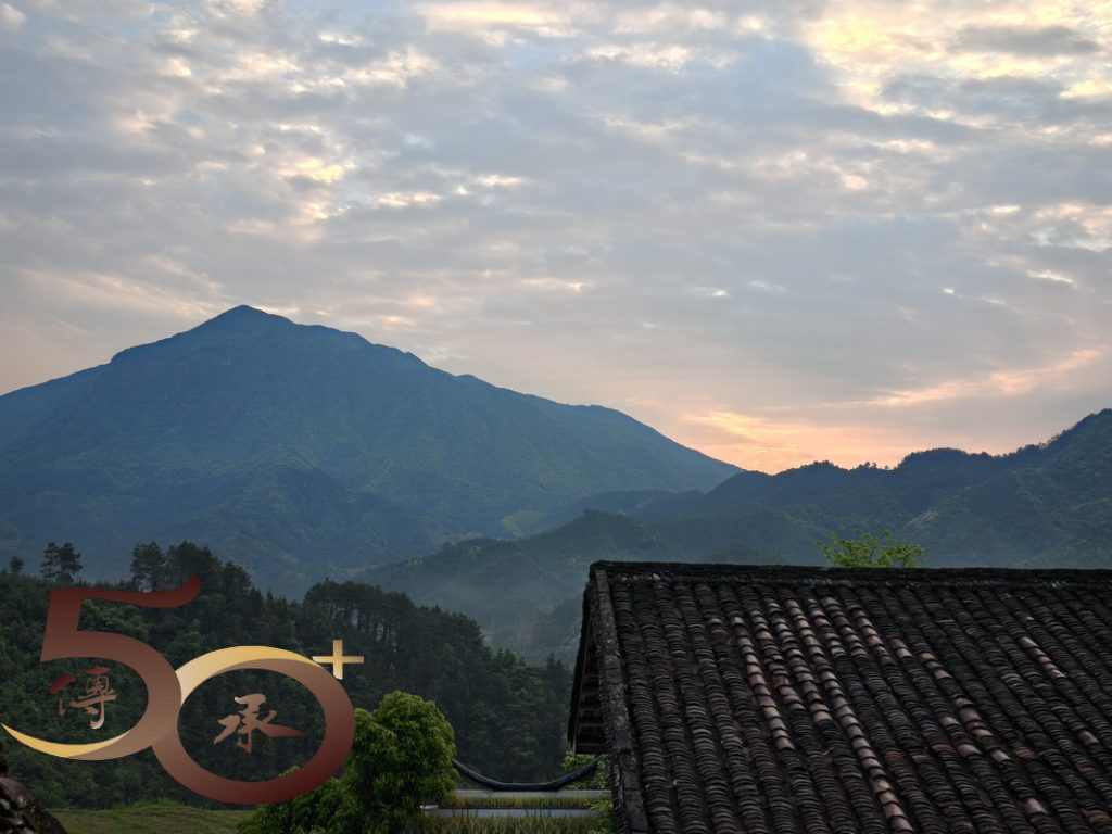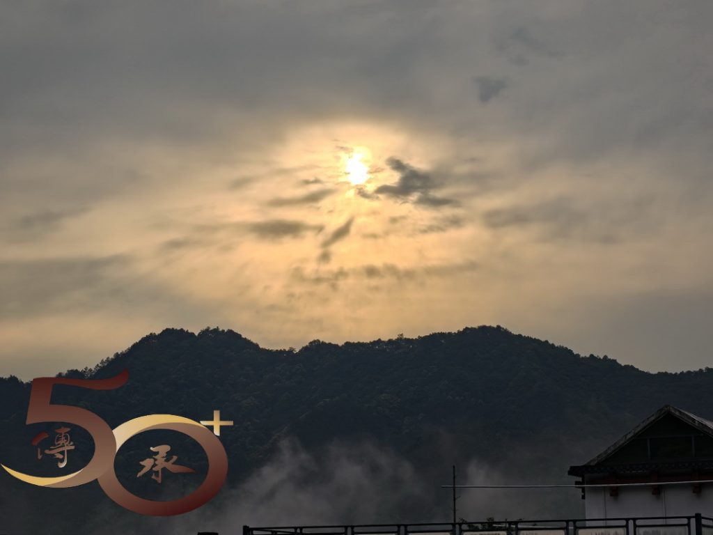 清晨破曉,「城市人」仍沉睡在夢鄉中,清風卻喚醒了「連山」,在一片朦朧山影中,含羞的旭日躲在「大霧山」後,只伸出霞光穿透疊疊的浮雲。氣溫漸升,薄霧隨風而至,像一層輕紗温柔地輕撫大地,山與水、灰與綠,霧靄中的山巒只剩下模糊的輪廓,彷如一幅細緻的水墨畫。