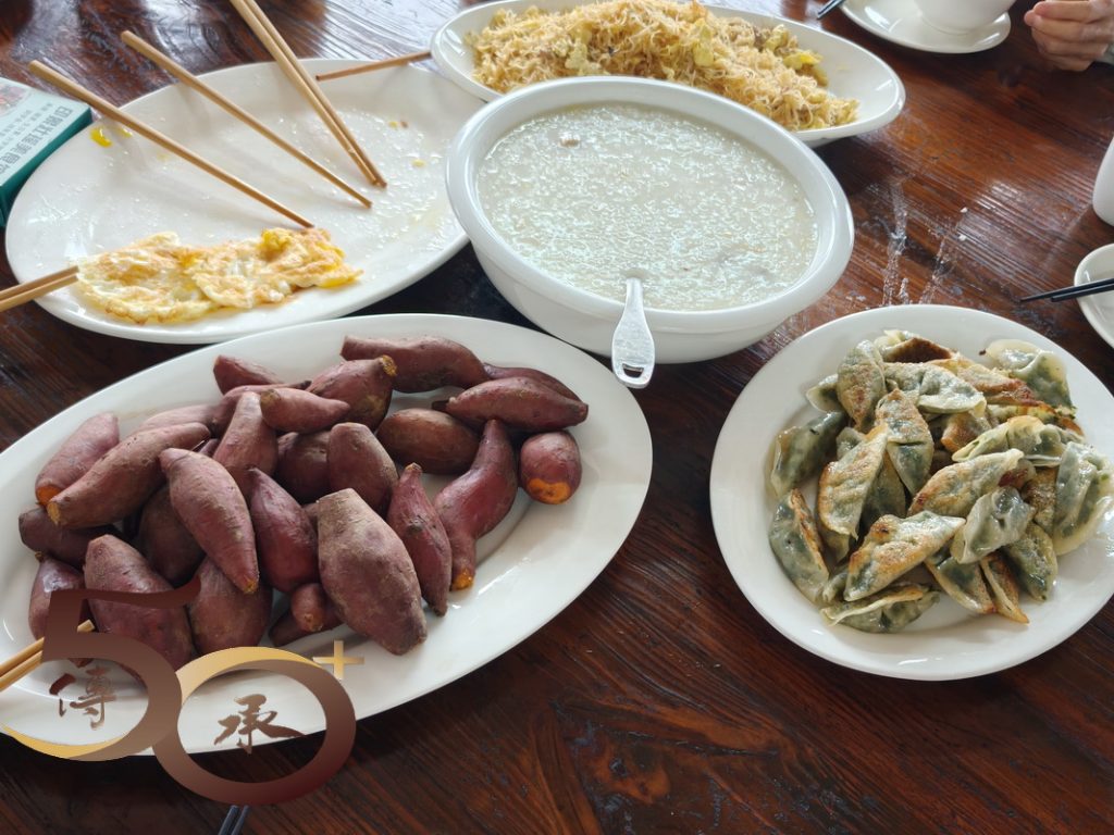 別過小草兒、告別大白花,離開清風小院,於上午0730時來到禾田餐廳,充滿農村風味的煎蛋、蕃薯、餃子和雞粥已備妥。對年青人來說,桌上看來十分簡單的早餐,卻是過去難以得嚐的「豐盛」佳餚,見證着國家由一窮二白到小康溫飽的付出和努力。