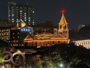 行行停停連同拍攝時間,步程約10多分鐘,不單留下濱江兩岸的美麗夜景,亦可將聯拱橋的弧形鋼管「凝聚」在相片中