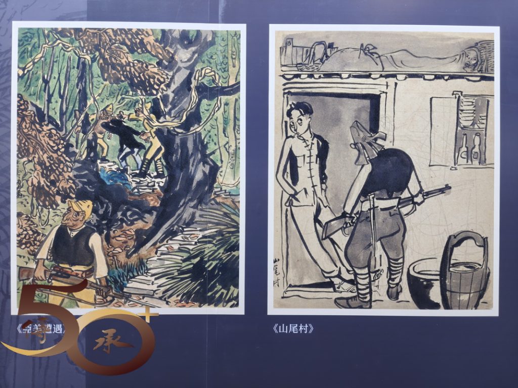 此外,葉淺予的《逃出香港》系列,是他留港期間目睹侵港日寇的殘暴,以及為社會和民生帶來的苦難。其後在「大營救」獲香港東江游擊隊送回大後方後的作品,包括香港淪陷前的《終於吃了一頓飽飯》、《我的新衣裳》和《發黃運輸汽車行》等作品,對比於淪陷後的《山尾村》、《敵運糧船》、《碼頭》、《搜查》和《拉夫》等,均是以紀實的手法,重現「日佔」下香港的悲慘景象。此外,《臂章階級》漫畫內對着日寇一臉諂媚的「藍衣」男子,或許就是死於劉黑仔槍下的漢奸蕭九如。最後烈士們獻上一束「電子」白花,作為此行的終結。