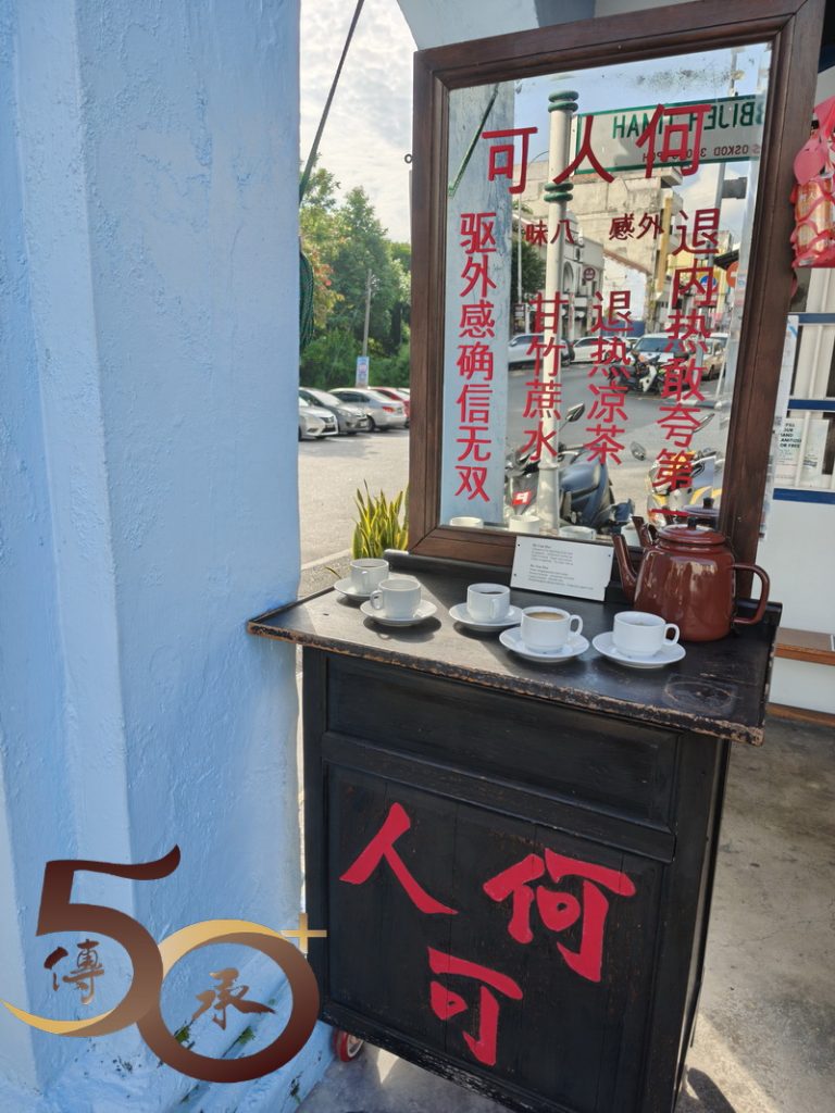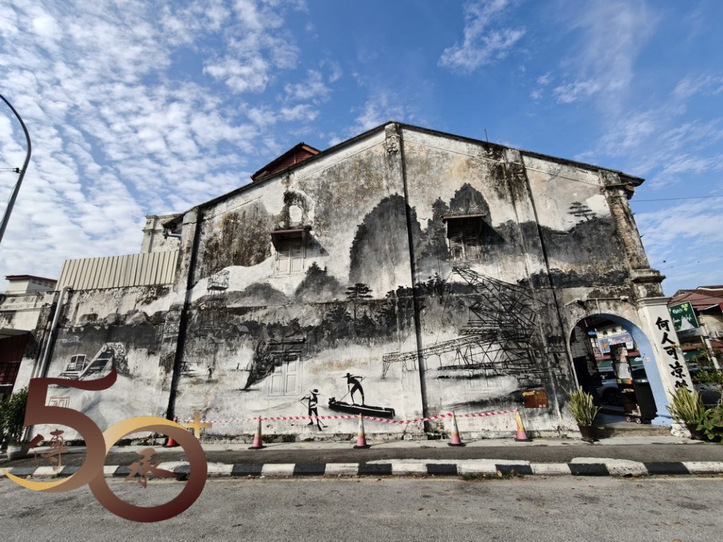 然而「何人可」臨街的外牆卻是一幅大型「牆畫」。描繪兩名中國苦力在打谷當採錫礦場上的工作情況。在藍天白雲的背景下,這幅美如「山水畫」一樣的「黑白牆畫」,背後卻訴說着礦工的哀歌,令人感觸。