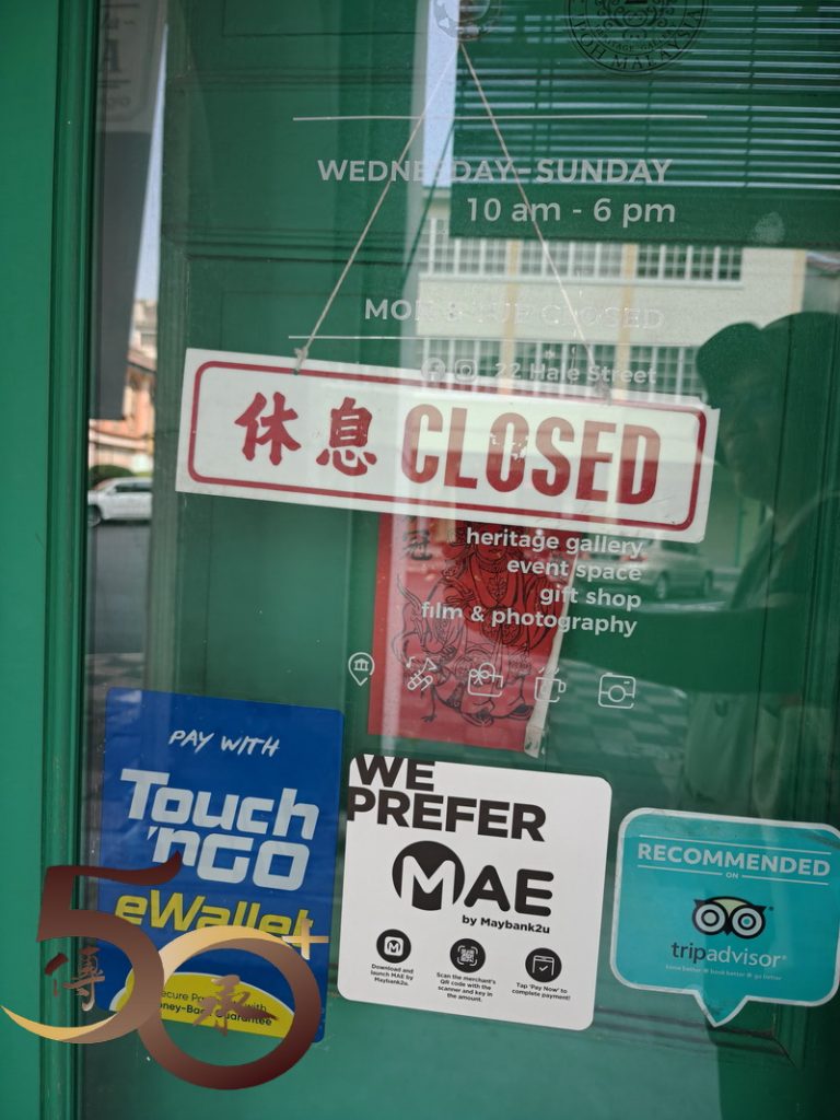 據網友介紹,有別於一般博物館,客棧街二十二號整條街道是一個藝廊與咖啡廳結合的文化廊。然而抵達時綠色大門掛上「休息Close」告示,門上展示的營業時間為星期三至日的上午1000時至下午1800時。今天是星期二,無奈要吃「閉門羮」了。