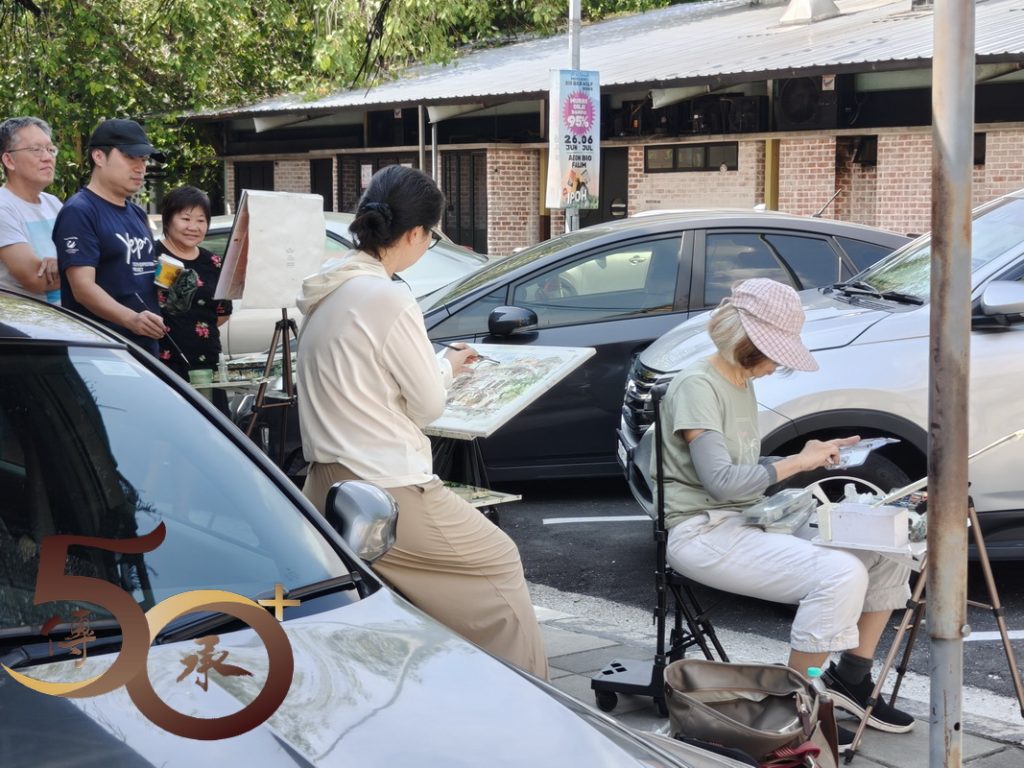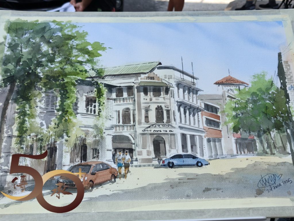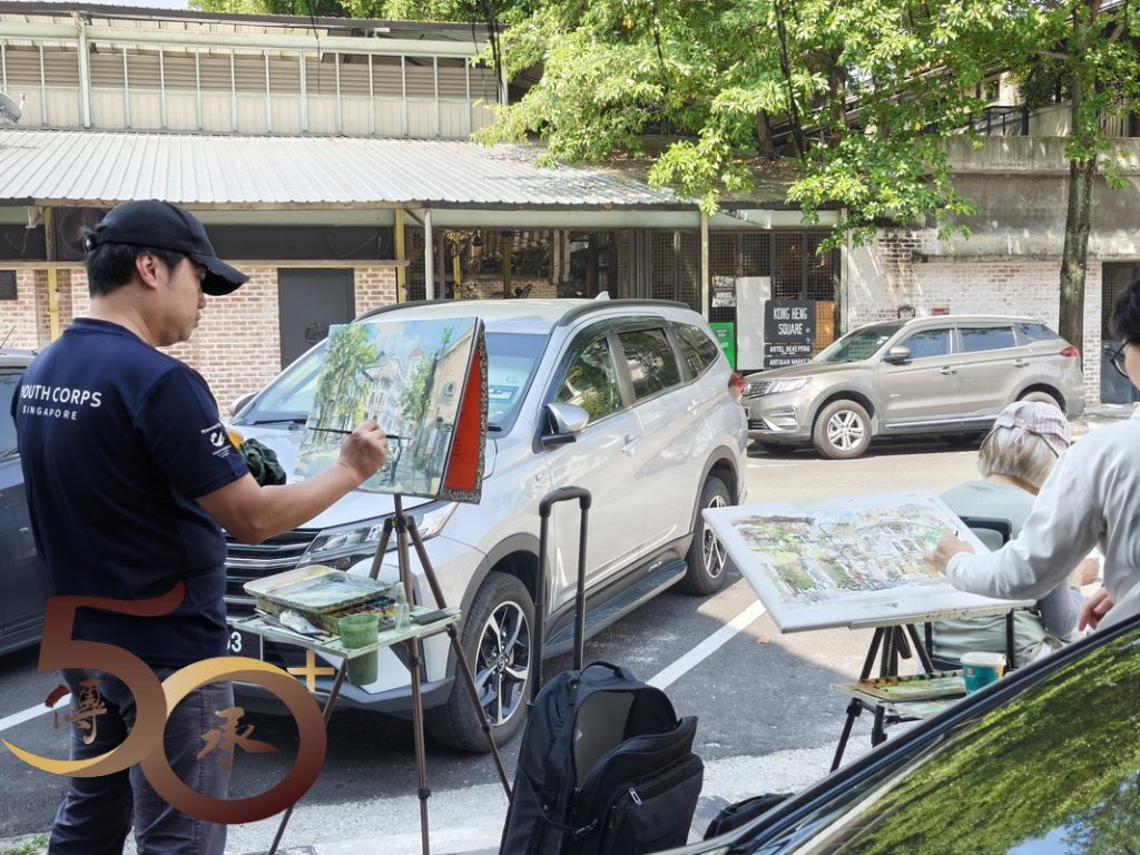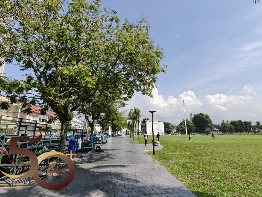 然而在烈日當空下,除你追我逐的白鴿外,草場上只有幾位不畏艷陽的小朋友在進行球類活動,未見其他野餐、慢跑和運動者的蹤影。然而在一街之隔,有多位「畫家」為建於1908年,最後一名甲必丹鄭大平錫礦業務的辦事處的「平記棧」(Arlene House) 寫生繪畫,悠閒生活莫過於此了。