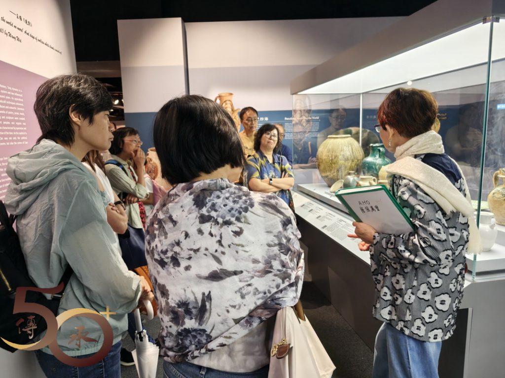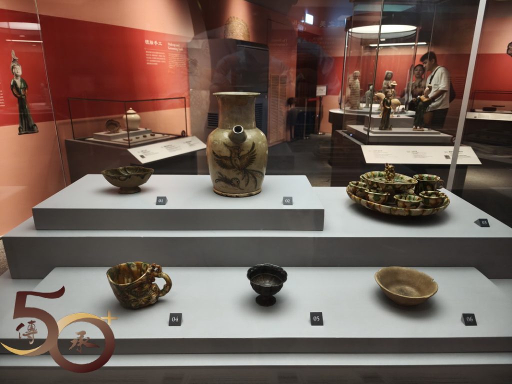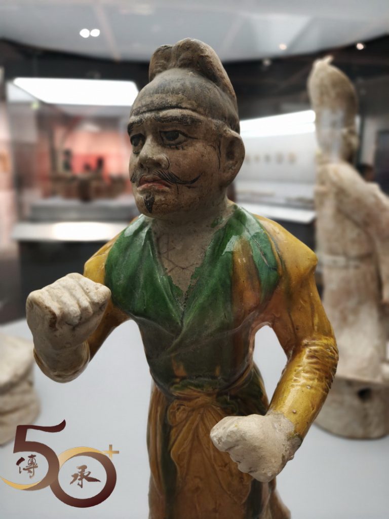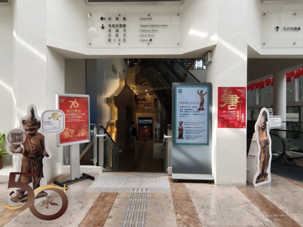 展出的展品包括一套四件,馬上女俑姿態活靈活現的「三彩打馬球俑」;反映貴族出行的「騎馬俑」;個人首次認識,作為進出皇城憑證的「魚符」;讓人驚嘆的「唐書•地理志」地圖上,有關廣府內中已有提到「南海」、「寶安」、「番禺」等地方名稱,以及「表情十足」的三彩樸帽牽馬俑。