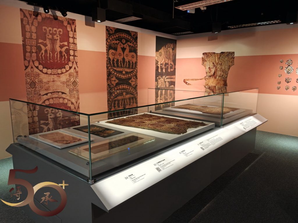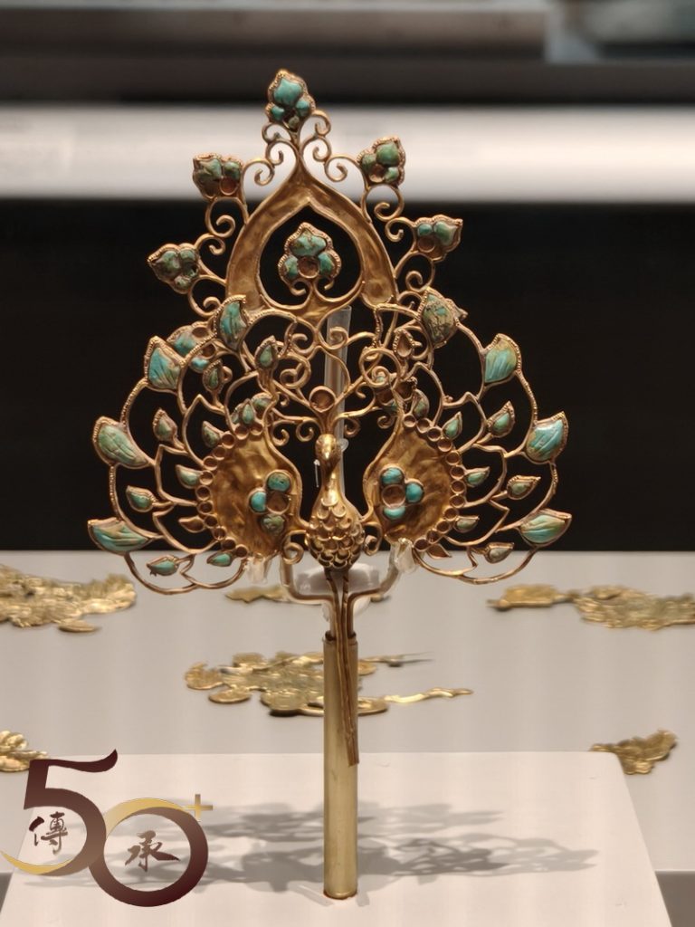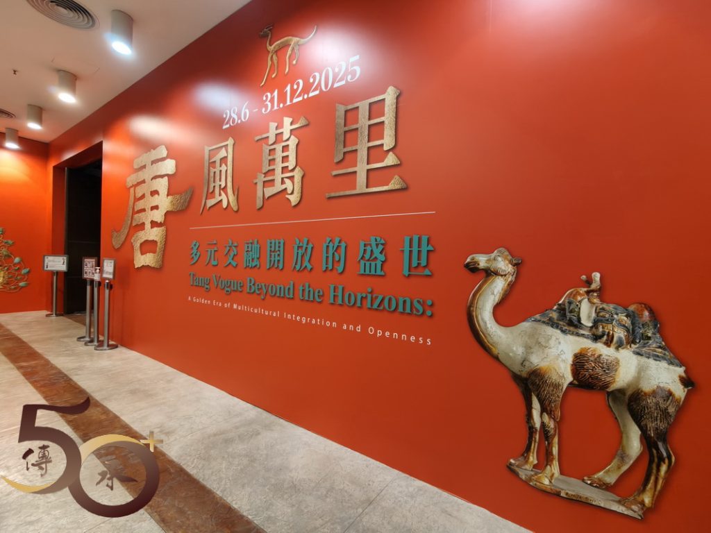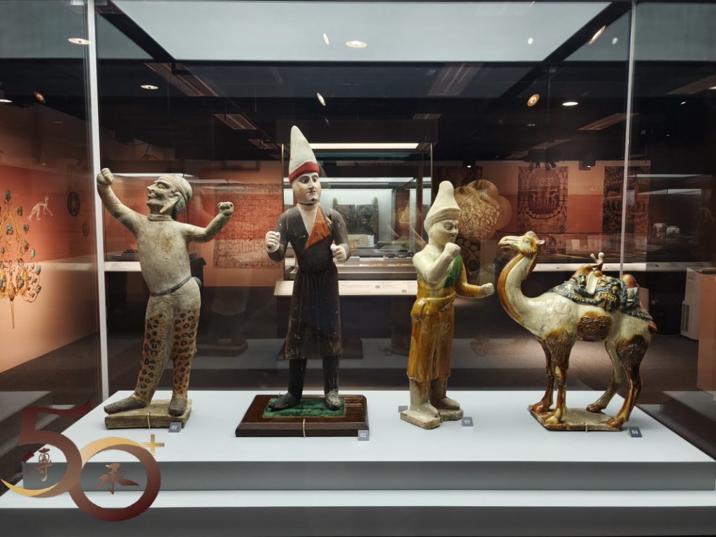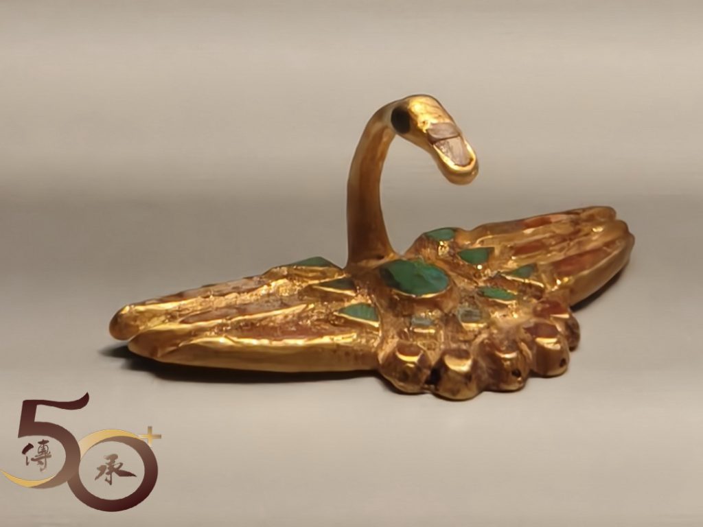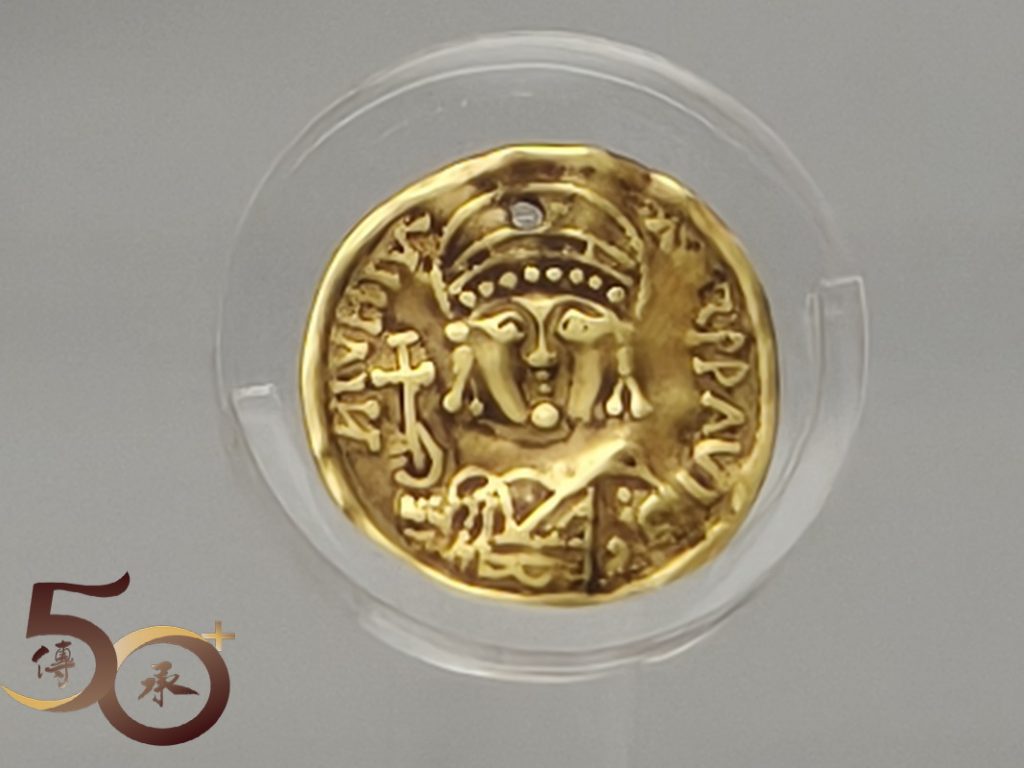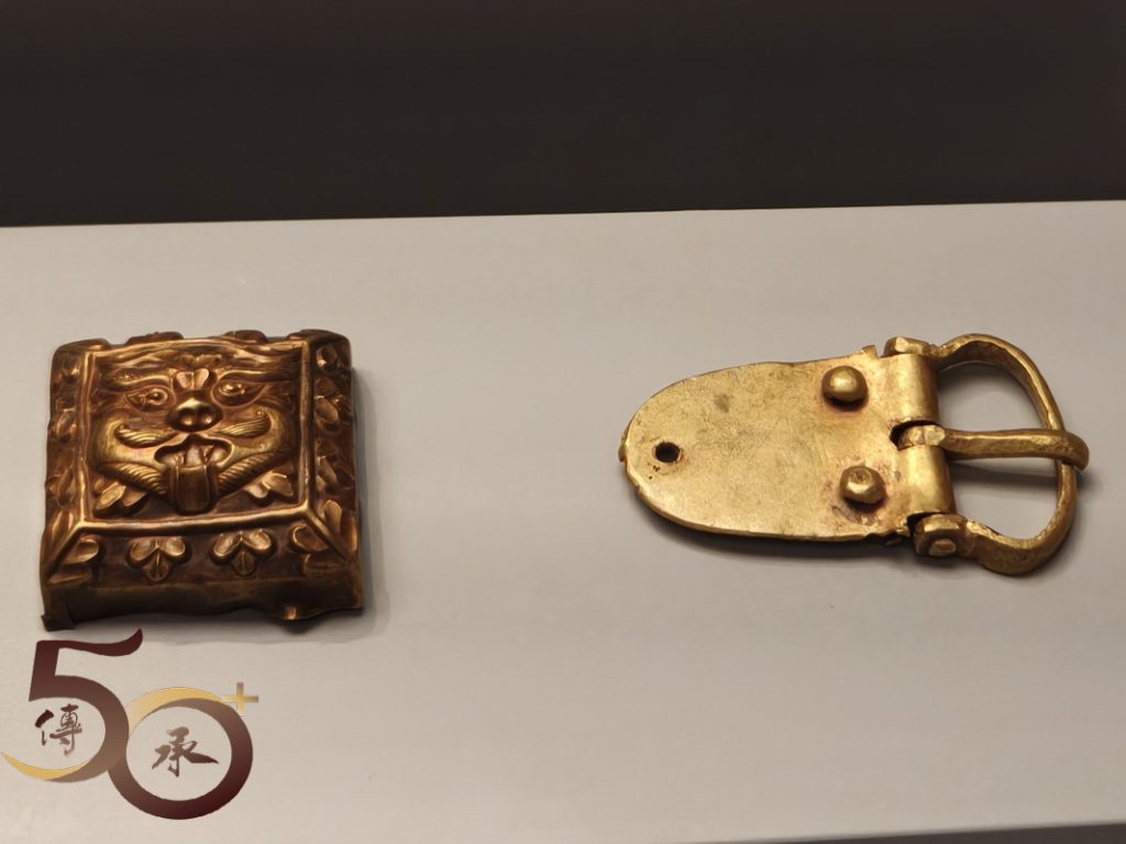 事實上,在絲綢之路貿易上不乏金飾製品,除「赤金走龍」外,還有製作十分精美的「嵌綠松石立鳳金飾件」、「嵌寶石金鵝飾件」和「獸面紋金腰帶」等,而展出的彩俑和駱駝俑,以及寧夏出土的「石刻胡旋舞墓門扇」和吐魯蕃出土的「東羅馬金幣」,則反映中西文化的交流和共融。