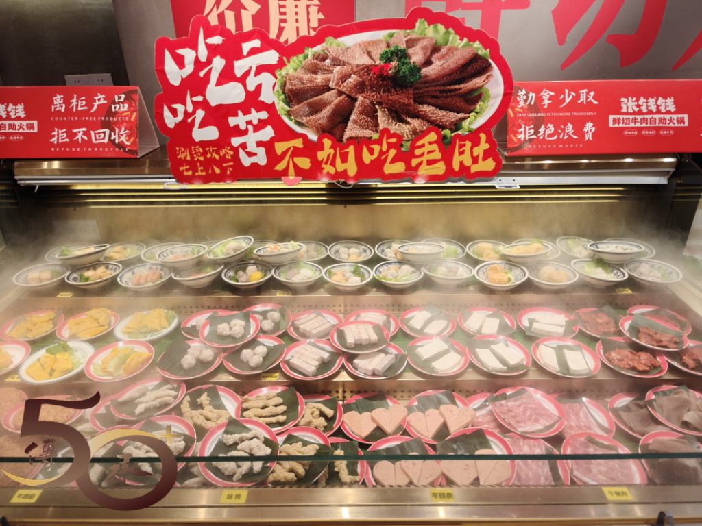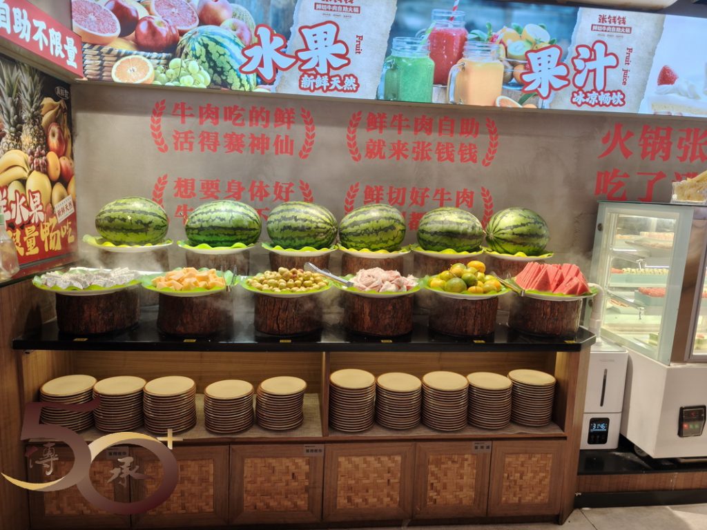 一時不察,誤將深圳灣萬象城視為「羅湖區」的萬象城,結果花了近一小時「遊遍」整個區域後,才從保安人員口中得知「錯路了」,無奈離開,順路到國貿的工商銀行更新認證手續,但無果(下文再述),接着往東門找吃,在行人天橋上看到對面張錢錢鮮切自助火鍋的大招牌十分吸睛,加上點評上任食雙人餐(189元)性價比不錯,便進店吃午餐。