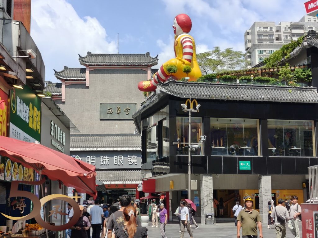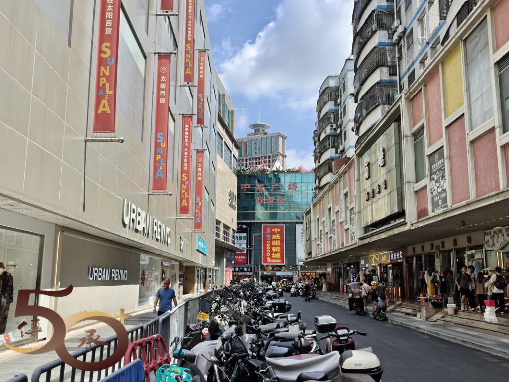 離開工商銀行,到不遠處的天虹超市購物。或許天氣炎熱,高溫下的街道遊人較少,讓東門「仿」老街有點兒冷清,卻有着平日較少見的「清潔衛生」風味。為免「與人爭過關」,在超市購物後,於下午1425時完成通關手續,返回香港。