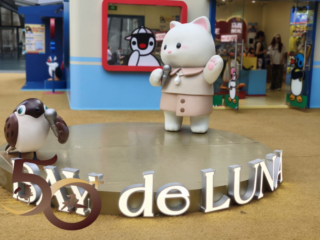 來到春笋草坪,中央蹲坐的「戴珍珠耳環的LUNA」一臉睡相,同樣吸引着龍友舉機拍攝。四周的「配角」雕塑,不論是繪畫、唱歌或持手袋的LUNA,以及陪隨的小鳥、又或兩者的相框等,都帶給遊人一片「歡樂」的感覺。