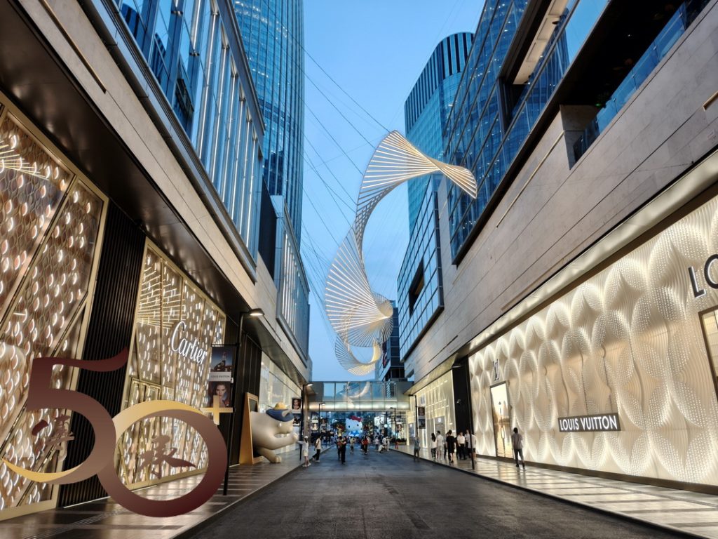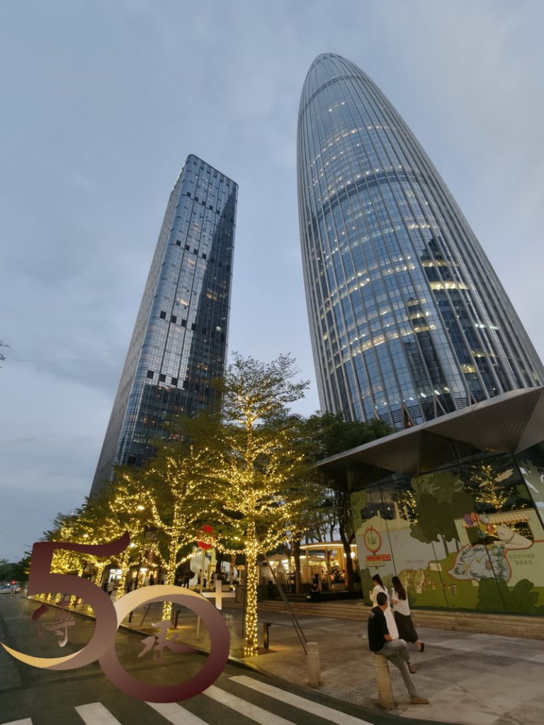 深圳灣萬象城名店林立,裝潢出眾,氣派不凡。然而對於吾等「荷包偏偏」的非購物者來說,還是抱持「行過算是到過」的心態,花點時間繞行一圈便足矣,而室外的巨廈在暮色襯托下,變成大地上的「擎天之柱」。