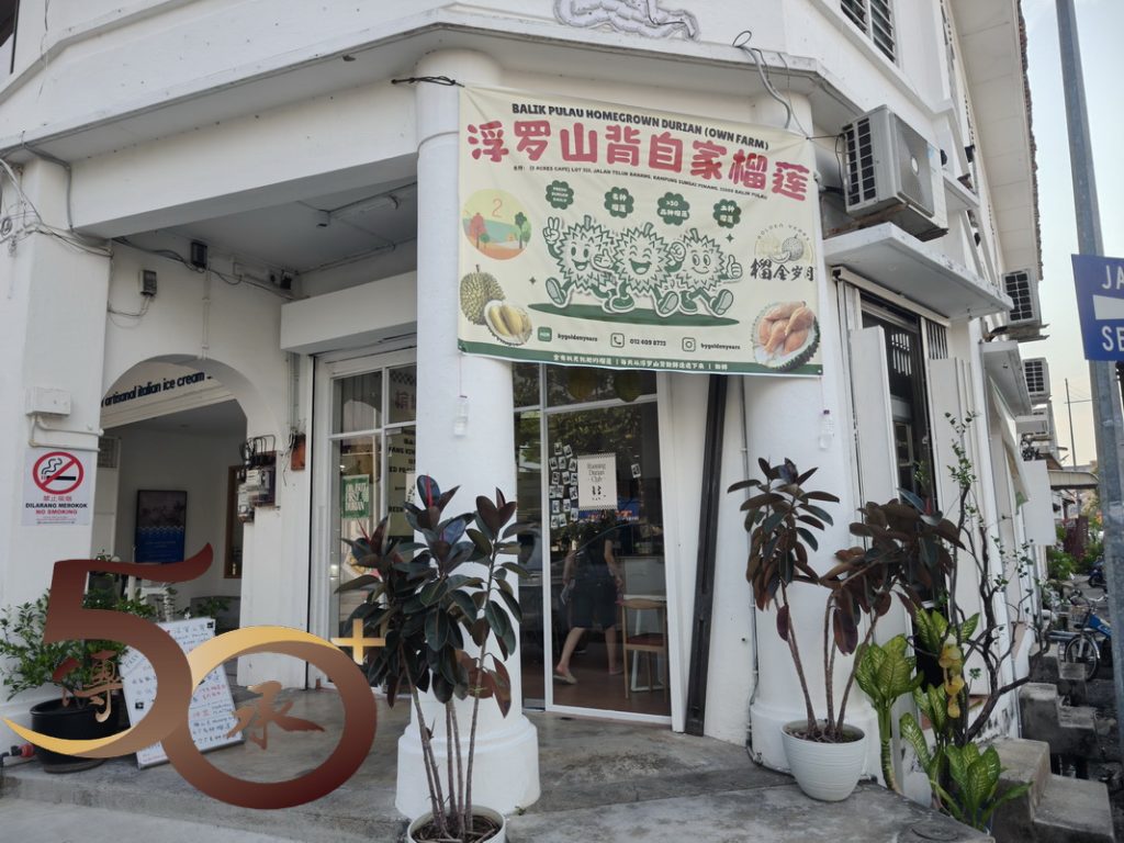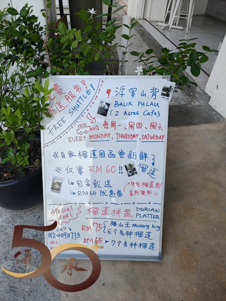 由北海乘船抵達拉惹敦烏達渡輪碼頭,徒步返回Hotel Lang Hoose途中,在一座十分漂亮的白色古民房外,明前展示「羅浮山背」自家榴櫣園,以及提供榴櫣拼盤的廣告。待至完成入住後,便折返「羅浮山背」,以達成出發前「一日一榴櫣」的計劃。