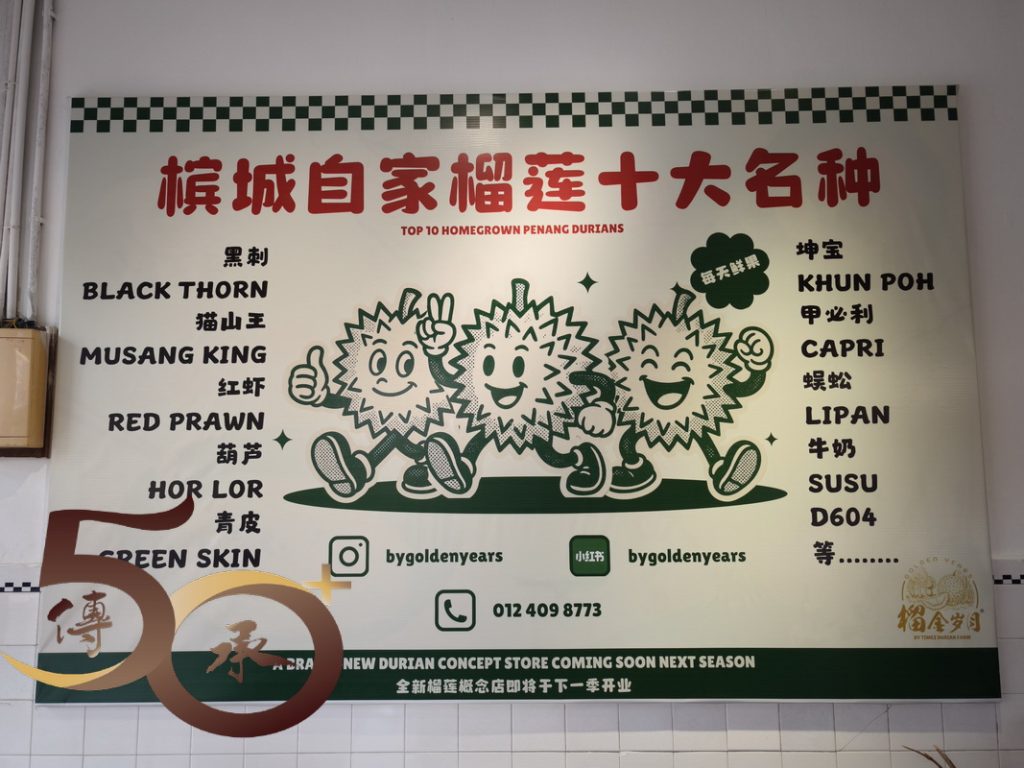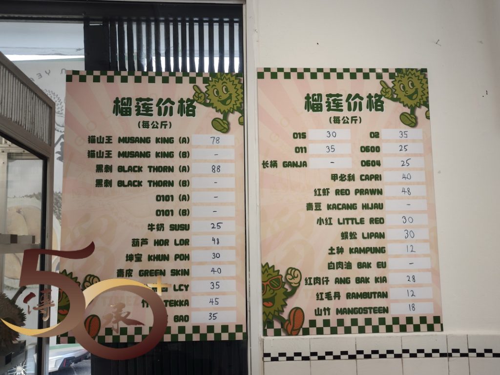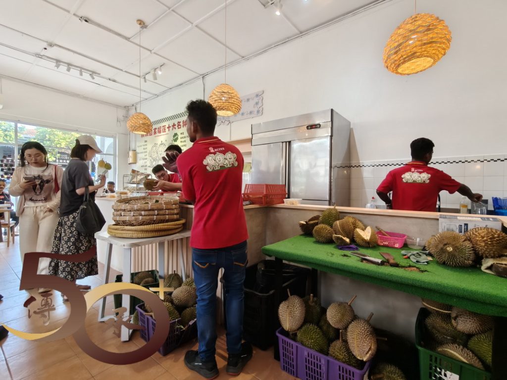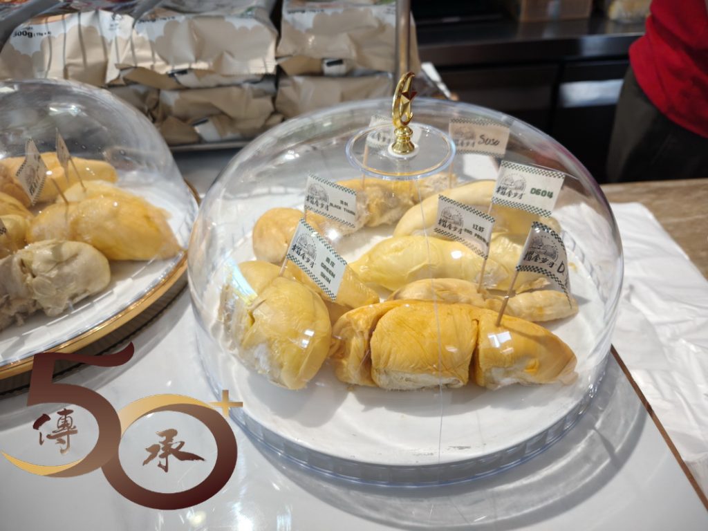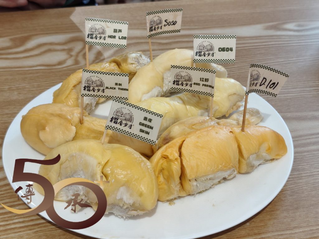 挑選了一客RM 75元的「榴櫣拼盤」,其中黑刺清甜;青皮苦澀但味濃;D101則是核細,而味道為兩者之間,好味;紅蝦甜度較高,而D604 濃淡適宜,味佳;Susu則是核大並帶苦味,卻有苦後餘甘的感覺,至於個人其中一款喜好的葫蘆,核大卻甚甜。雖則榴槤味較少,卻是嗜甜者至愛。