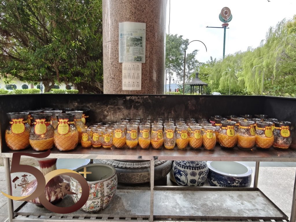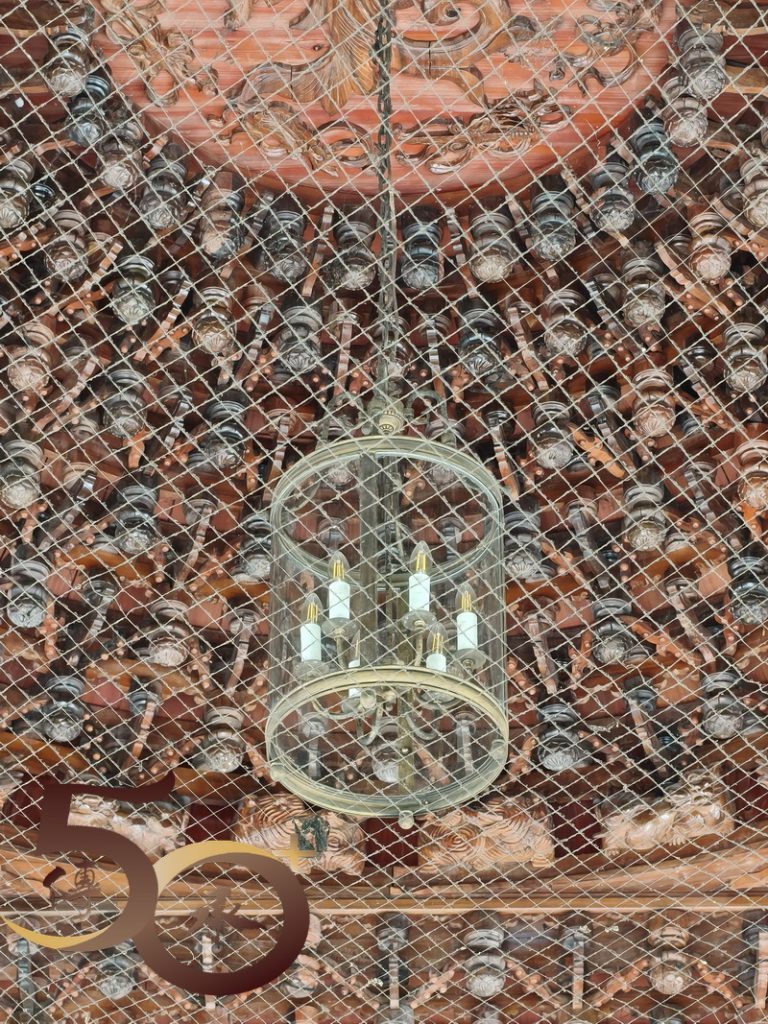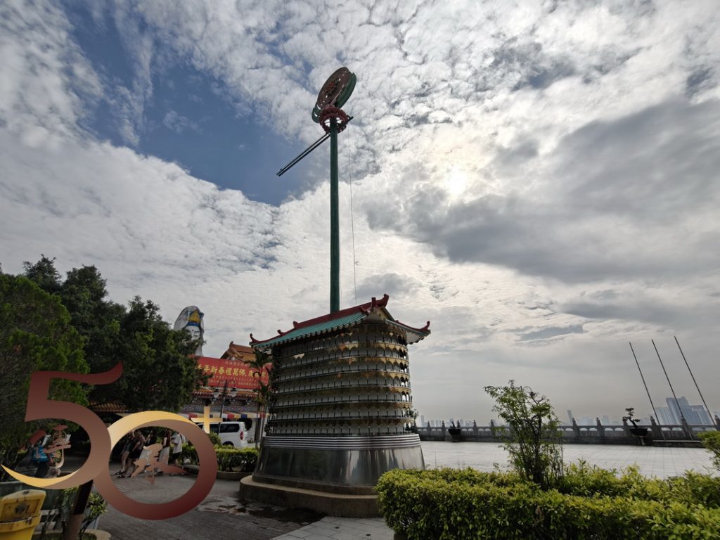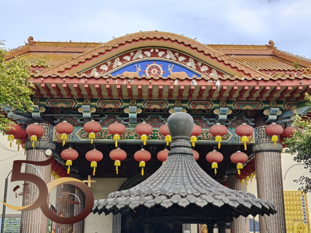 正門前鑄於2005年11月的巨型香爐,爐腳不見九龍之子的狻猊,而整個圓形的爐身卻有點像紫砂茶壼。進廟可見「千手」準提王菩薩居中而坐,神態安詳,而以中國傳統卯構建,層層疊疊,十分精美的圓形屋頂,卻隱身在保護絲網中,難以拍出其美。