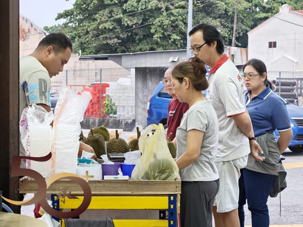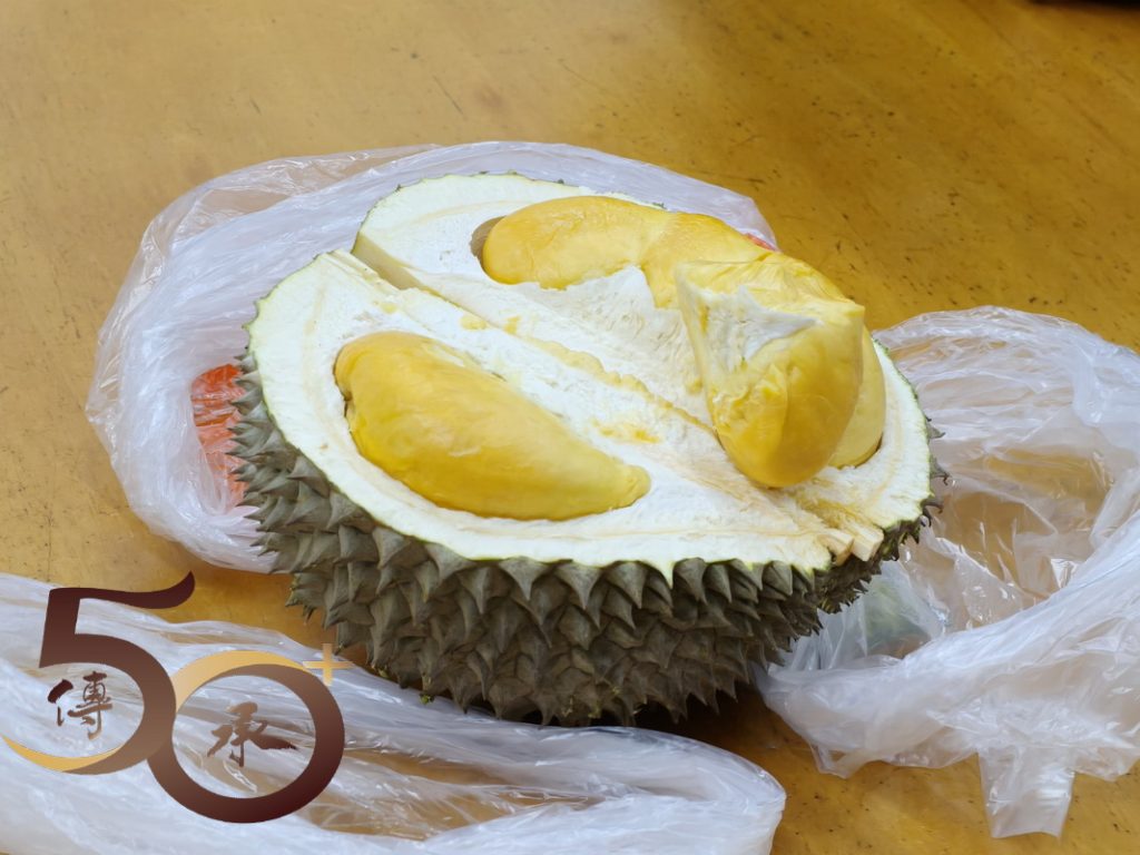 行行重行行,不知不覺來到新亞茶室,首先被其門前的榴櫣攤販與顧客的「傾價」吸引。雖然榴櫣價錢尚可,惟不及今午阿章榴櫣便宜,加上午間已吃過,不再多吃了。看着顧客購得榴櫣後拿到店內與友好開懷同食,我倆也進店點餐感受一下熱鬧的氣氛。