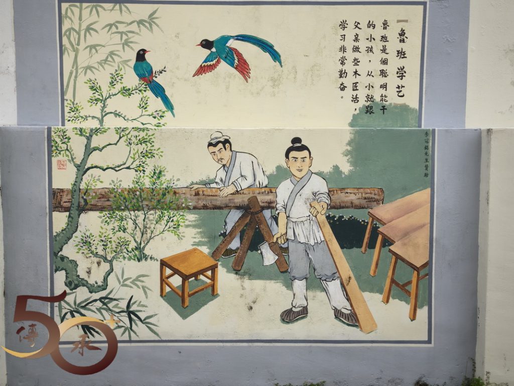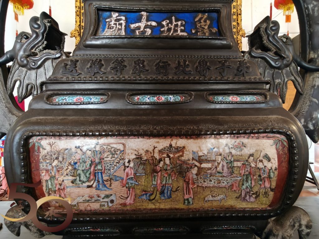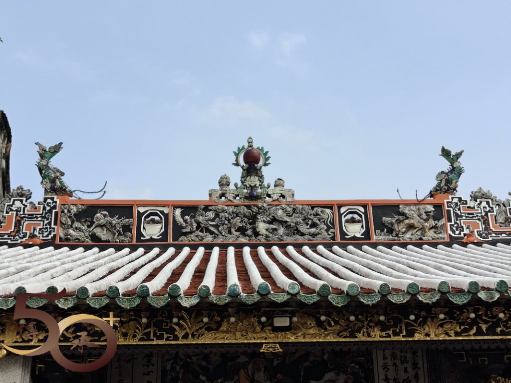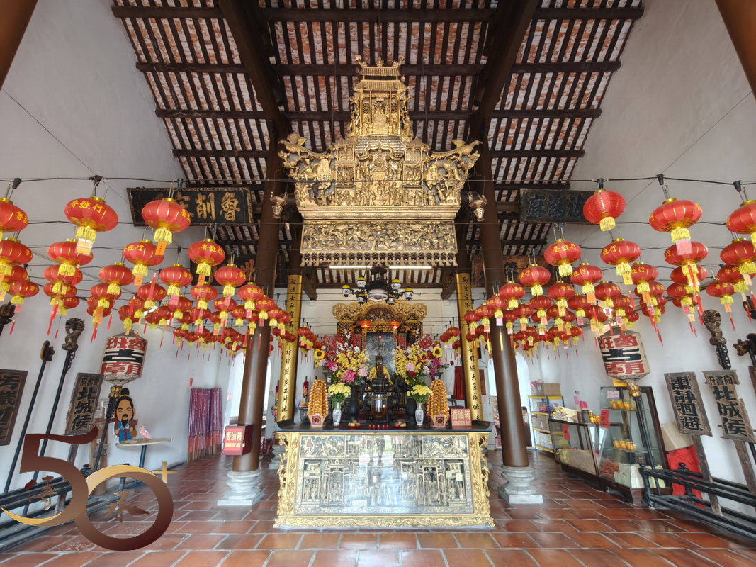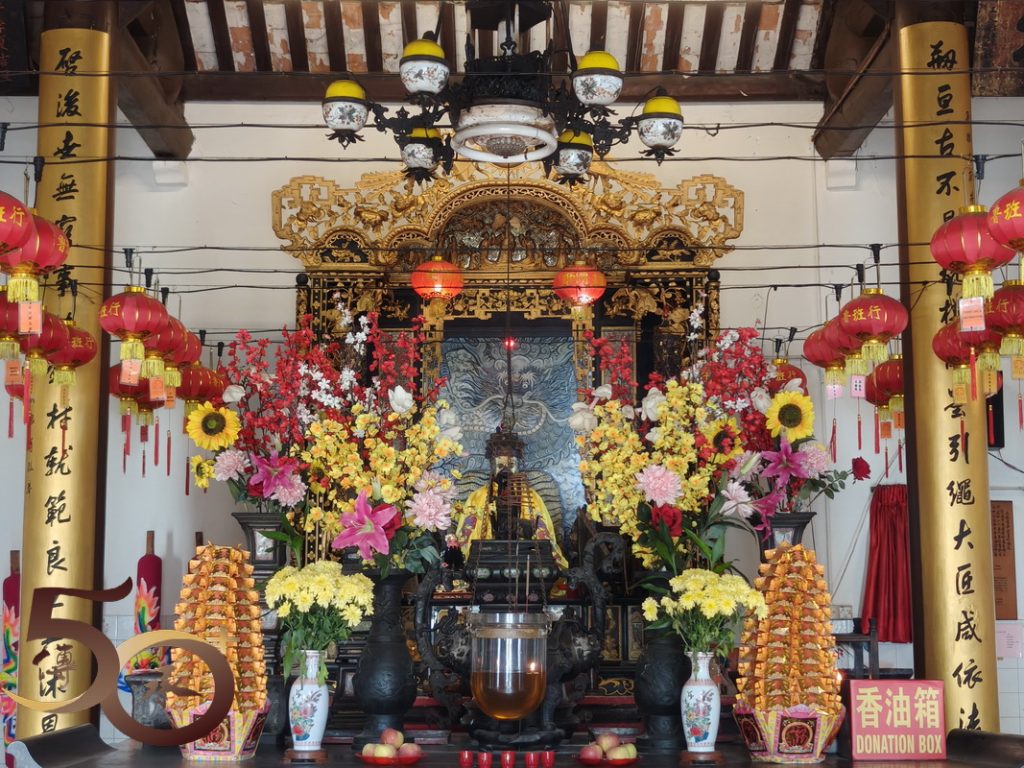 雖然隱含和平共處的牆畫是「愛情巷」的特色,但目光卻被魯班古廟吸引。這座外表屬中國傳統建築,屬四柱三間式風格的廟宇,二進後竟是座採用東南亞構建而成的民宅。