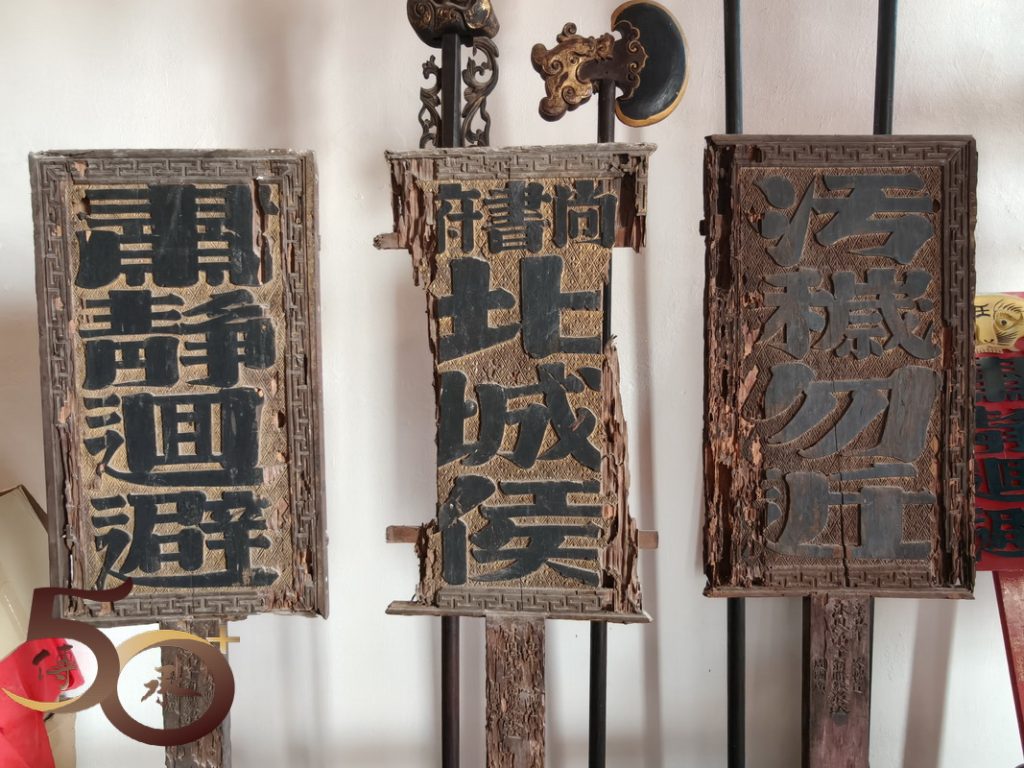 古廟佔地不大,兩進式的設計,在二進間設有香亭,金面金袍的主祀北城侯像(魯班)在金色彩屏下居中而坐,兩側置有大型香架,插放着有別於中式傳統香燭的巨型香枝,色彩斑爛的配色,甚有東南亞風味。至於二進後的民宅式樓房,在不同廳房內展示魯班的資訊外,還仿如村公所般置有醒獅裝備和枱椅等,供村民聚會和慶典之用。