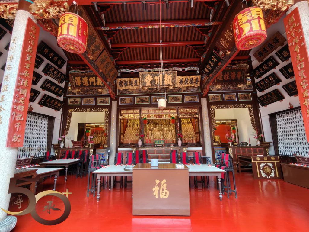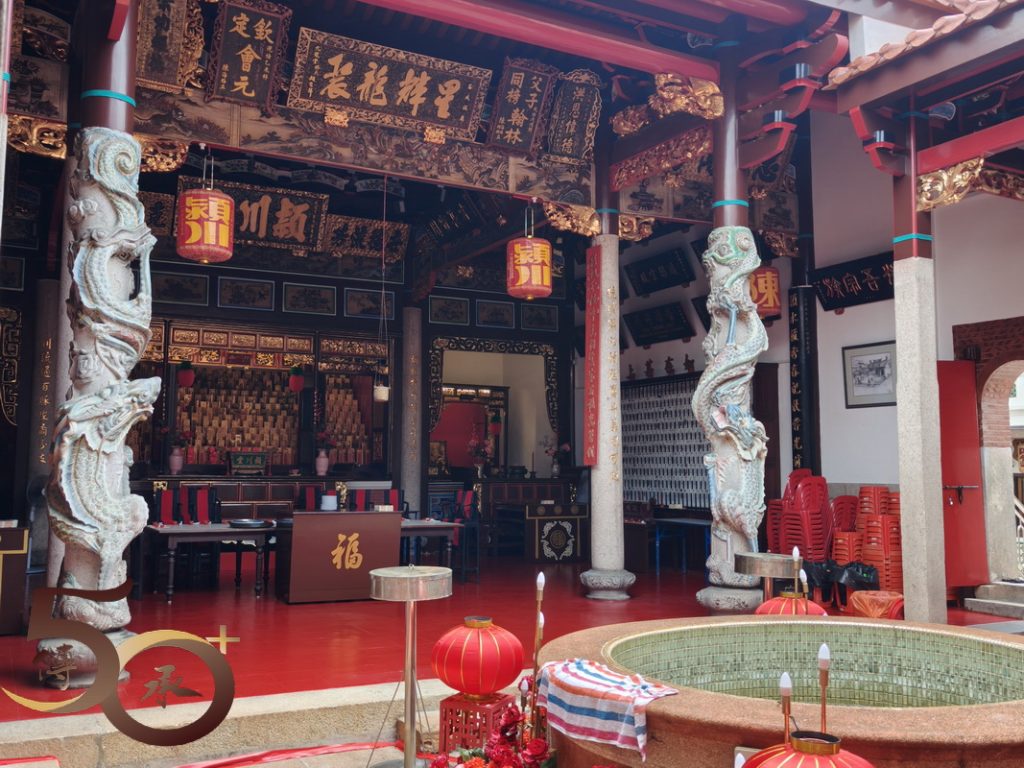 陳、邱、林、謝、楊並稱為「檳城五大姓」,眼前成立於嘉慶15年(1810年)的穎川堂陳公祠,已有逾二百年歷史,前稱陳聖王公司,為檳榔嶼最悠久的姓氏血緣組織,藉此聚合陳氏族人,認同血緣上的同源,成為祠廟一體,甚至培育子弟成才辦學之所。