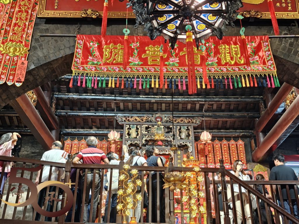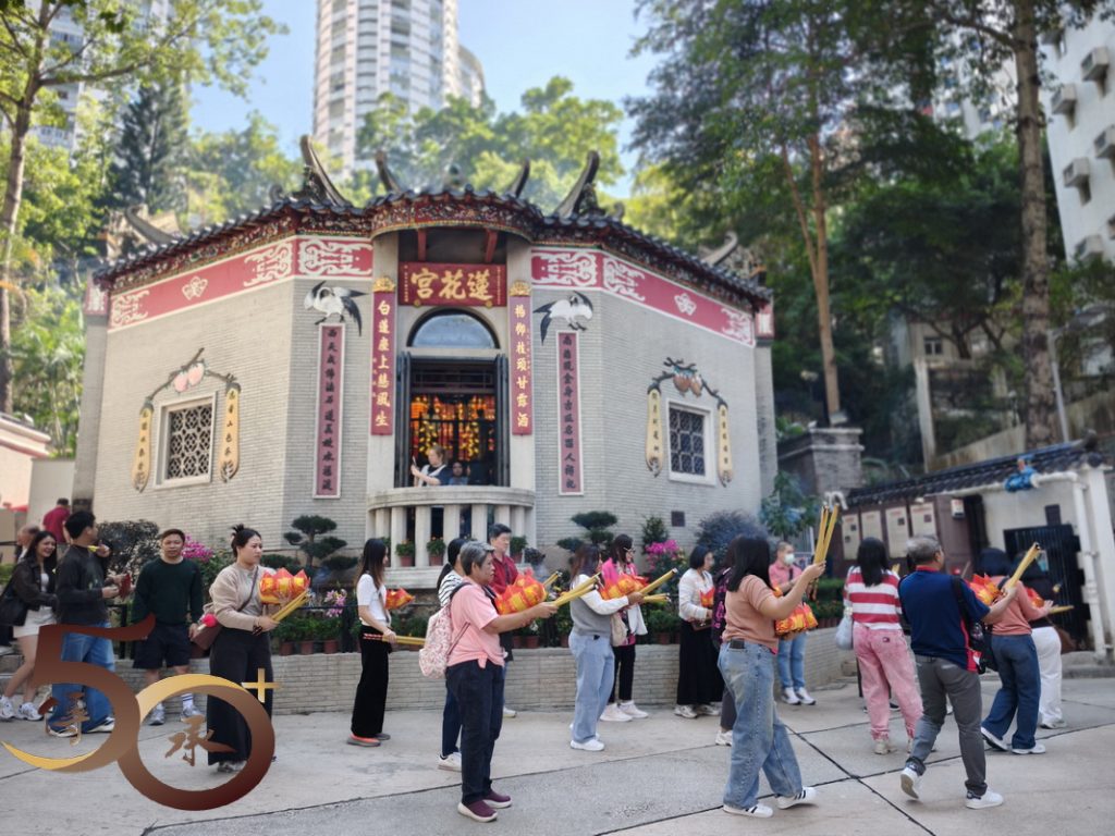 華人廟宇「2025年廟宇漫遊」文化之旅(港島線)的灣仔玉墟宮導賞行結束,隨即乘車到大坑天后宮,參與一小時後緊接舉行的大坑蓮花宮導賞行,同樣由香港歷史博物館前館長鄒興華老師,聯同學生青年大使帶領。