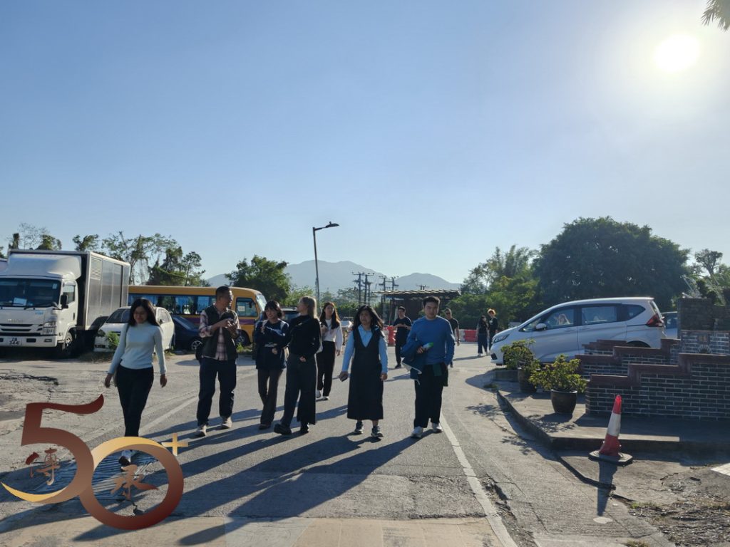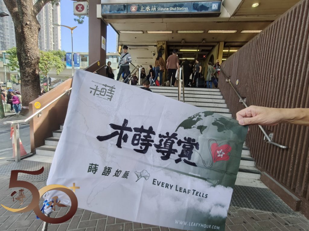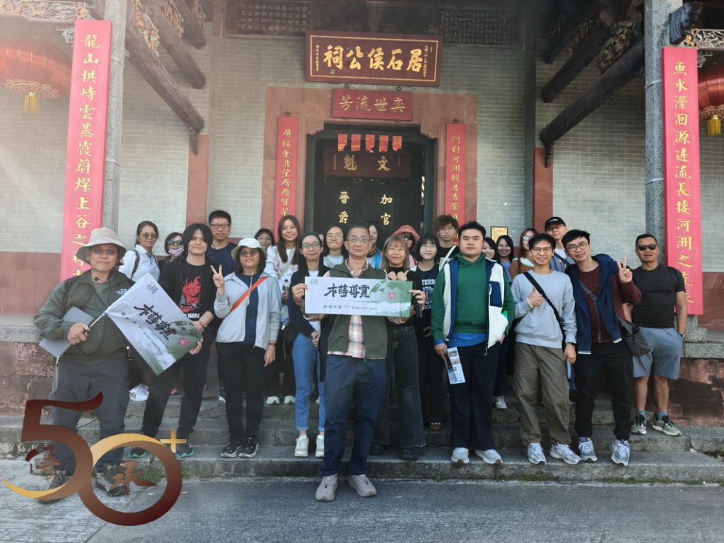 今日(2025年11月22日)下午1330時,在人潮熙來攘往的港鐵上水站A3進出口對開的空地上,木蒔導賞的小旗幟迎風飄揚,迎向每名在網上報名的參加者。由於參加人數眾多,工作人員首先安排參加者分批乘坐51K專線小巴,前往河上鄉居石侯公祠。