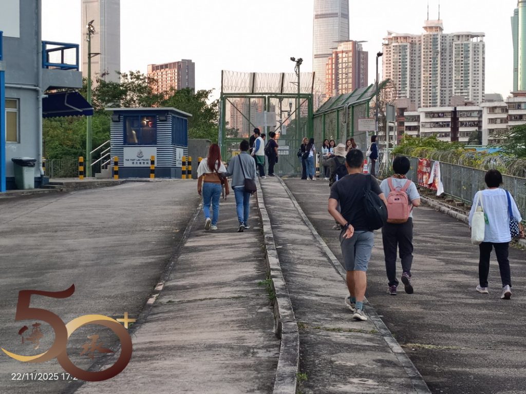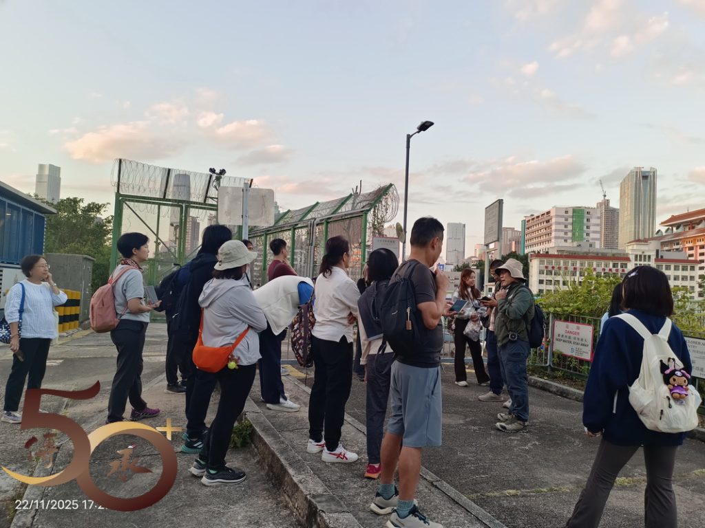 由於時間已晚,在吃過美味的豆腐花,一眾參加者沿雙魚河和梧桐河,來到河對岸的「大輸水管車道」,了解60年前供應東江水的因由,以及輸水的過程,接着透過圖片,認識183米高的前英軍駐地的大石磨後,徒步10多分鐘來到羅湖邊境的得月樓警崗,打卡拍照後導賞行程宣告圓滿結束,最後折返河上鄉乘小巴返回上水市中心。藉此機會,再次多謝各參加者的支持和參與。